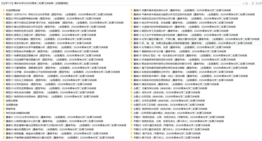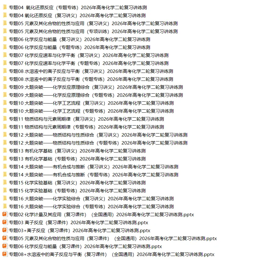 今天思齐给同学们整理了高中化学——2026年高考二轮复习讲义课件练习题(全国通用版)。家有高中生的家长可以给孩子下载打印一份。