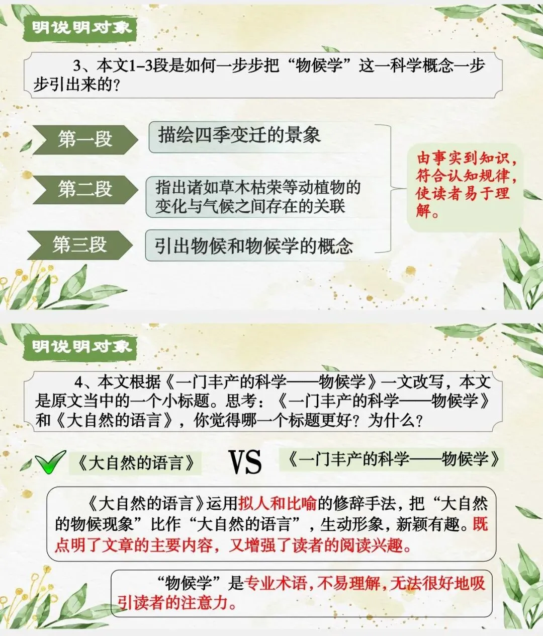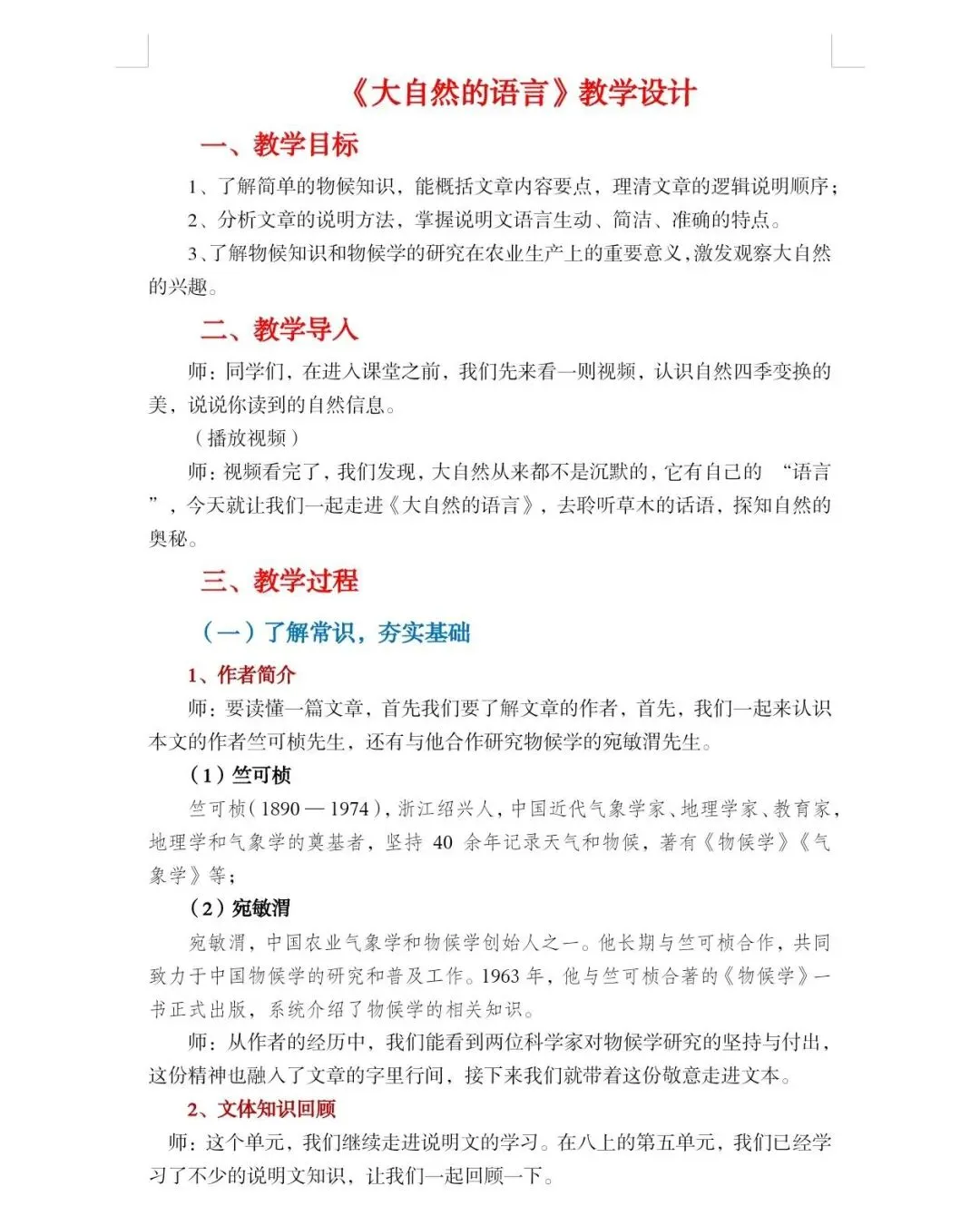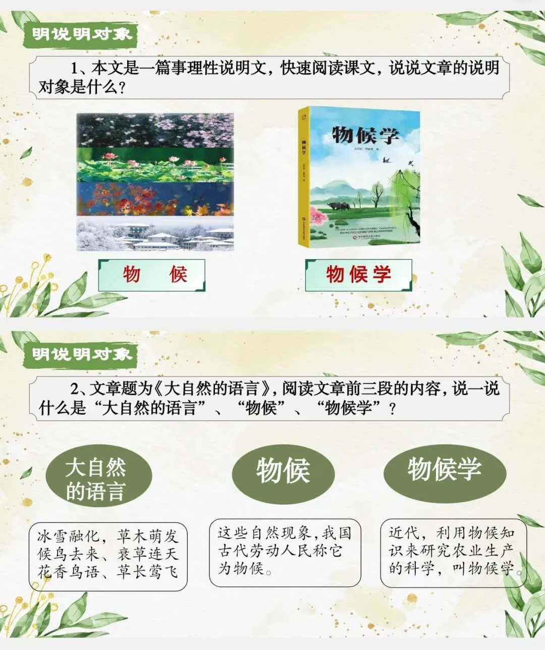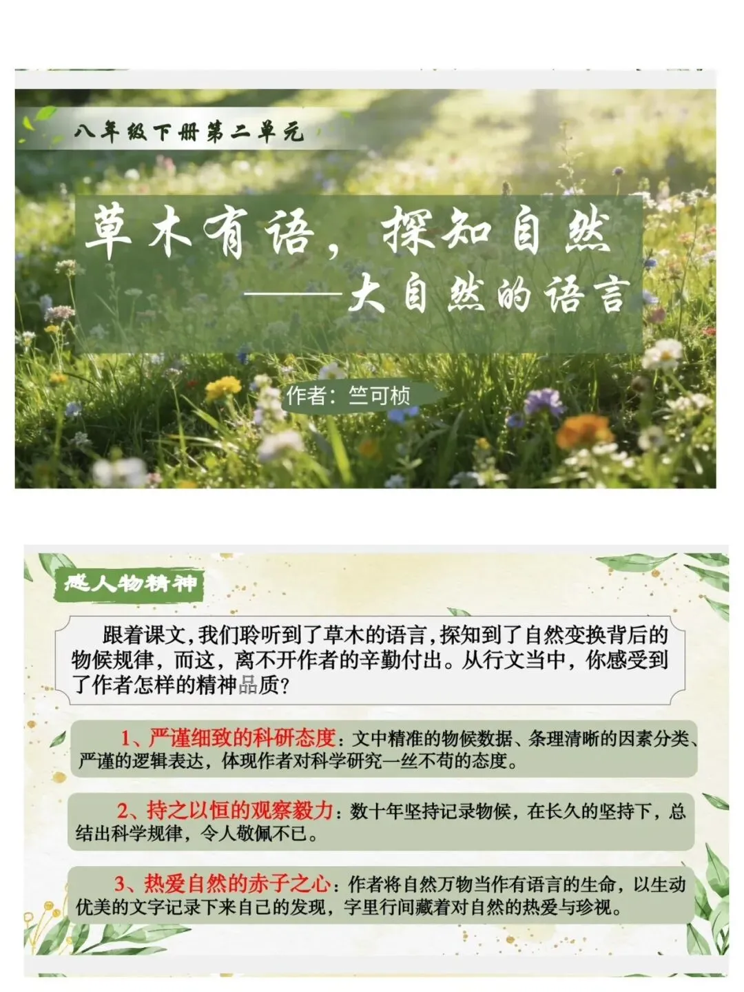新八下语文《大自然的语言》课件+教学设计,五大教学环节环环相扣!