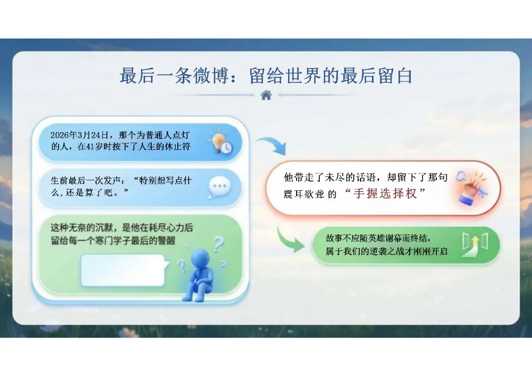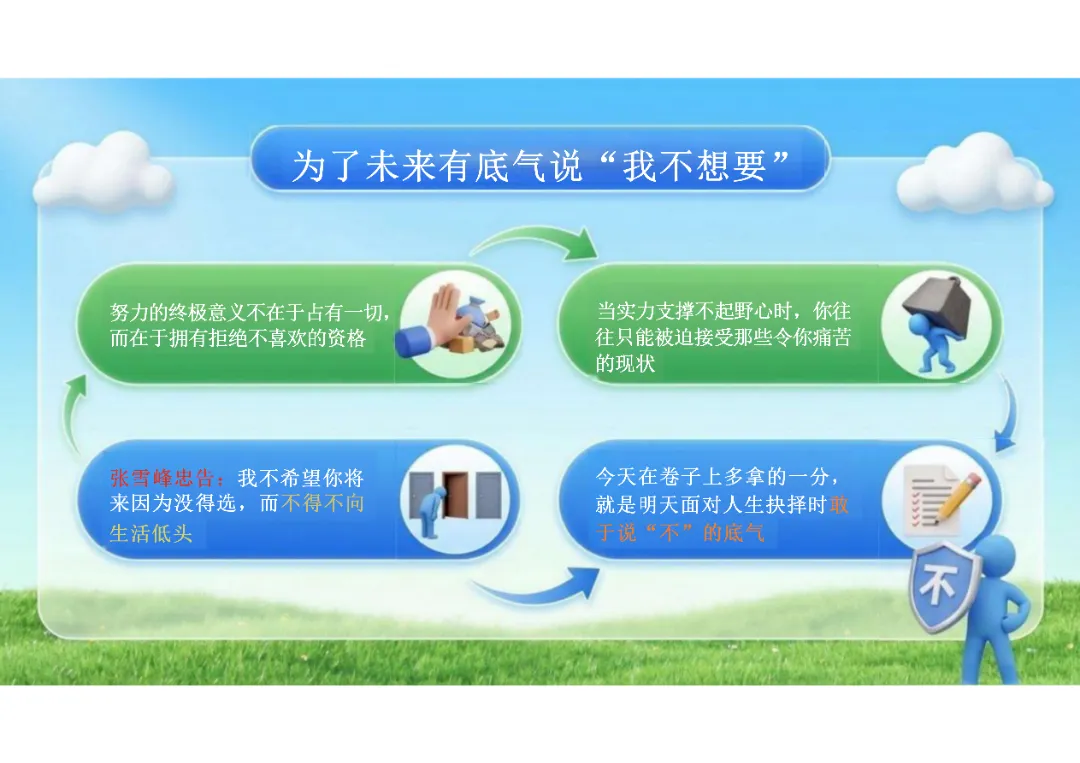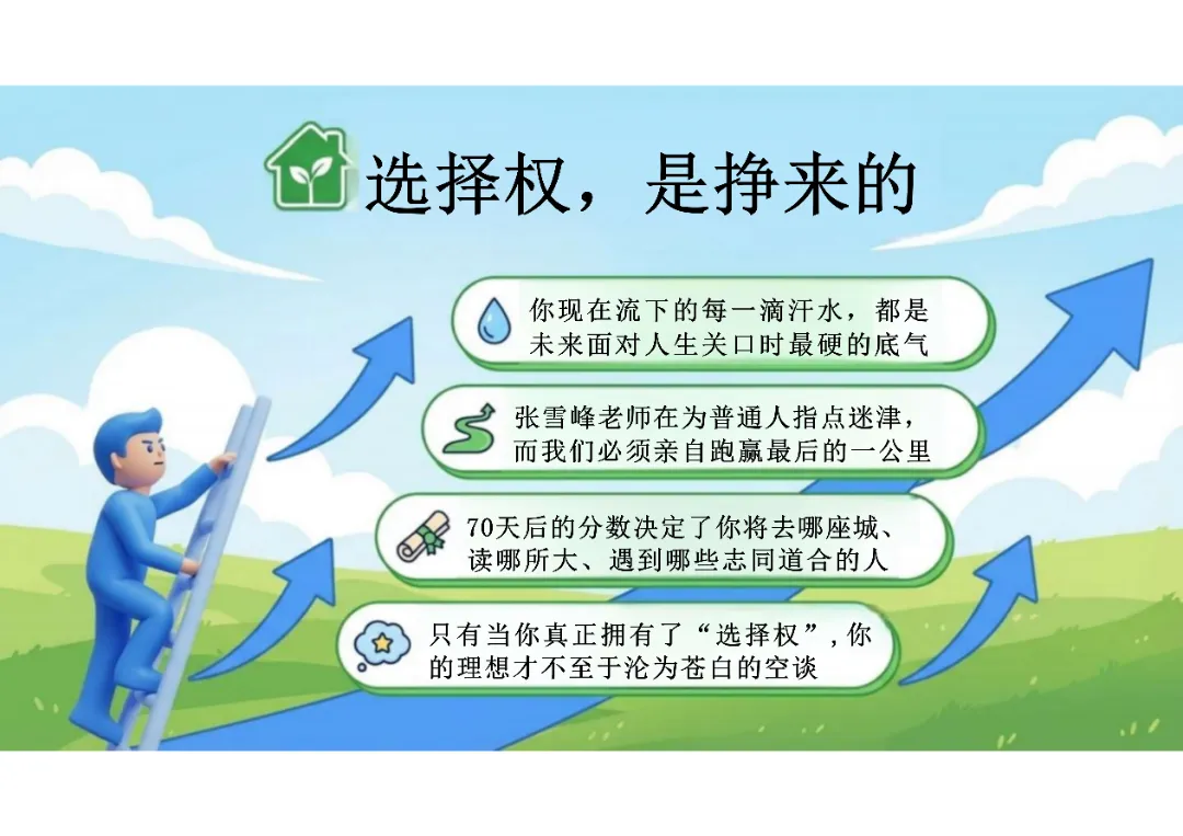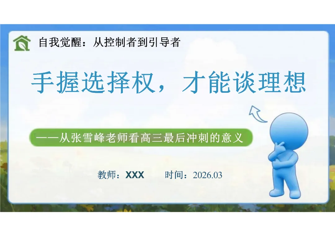 【高三】2026春新版考前动员主题班会课件PPT:从张雪峰老师看高三最后冲刺的意义——手握选择权,才能谈理想(电子版可编辑),部分内容由PPT展示可见。