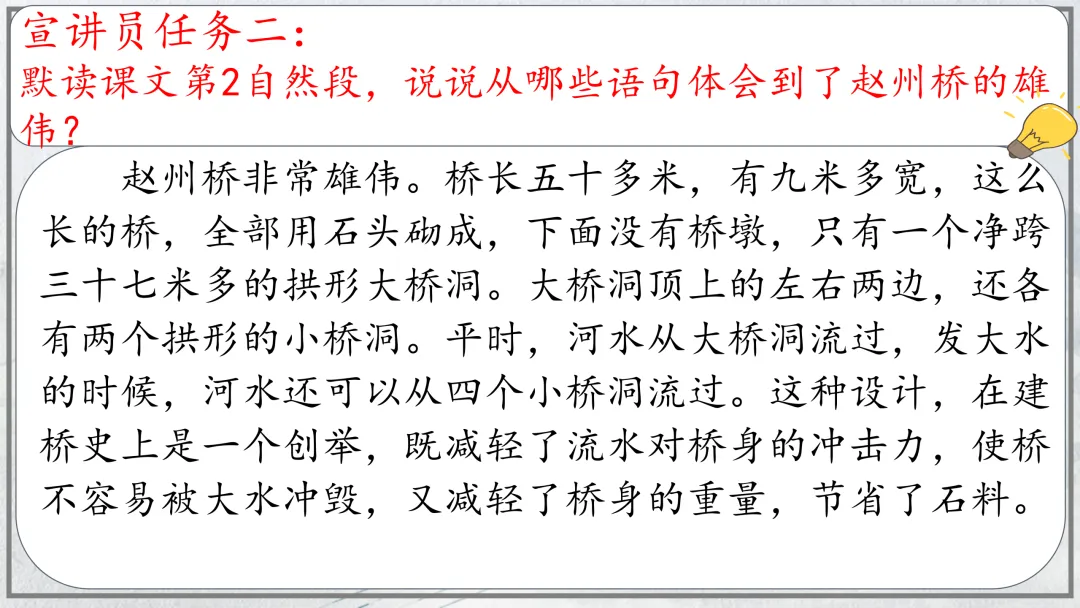 默读课文第2 自然段,说说从哪些语句体会到了赵州桥的雄伟?
