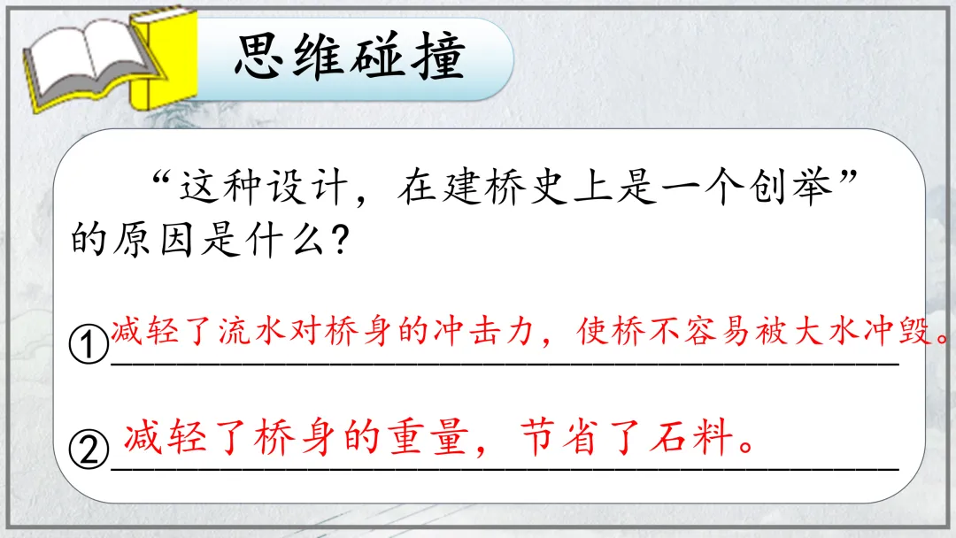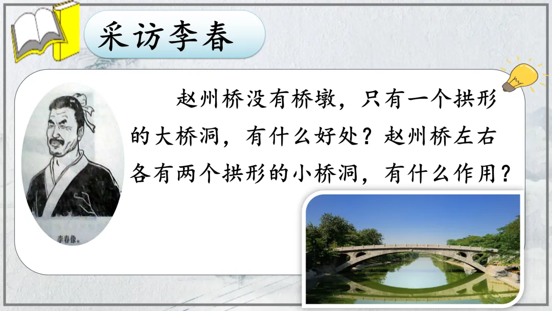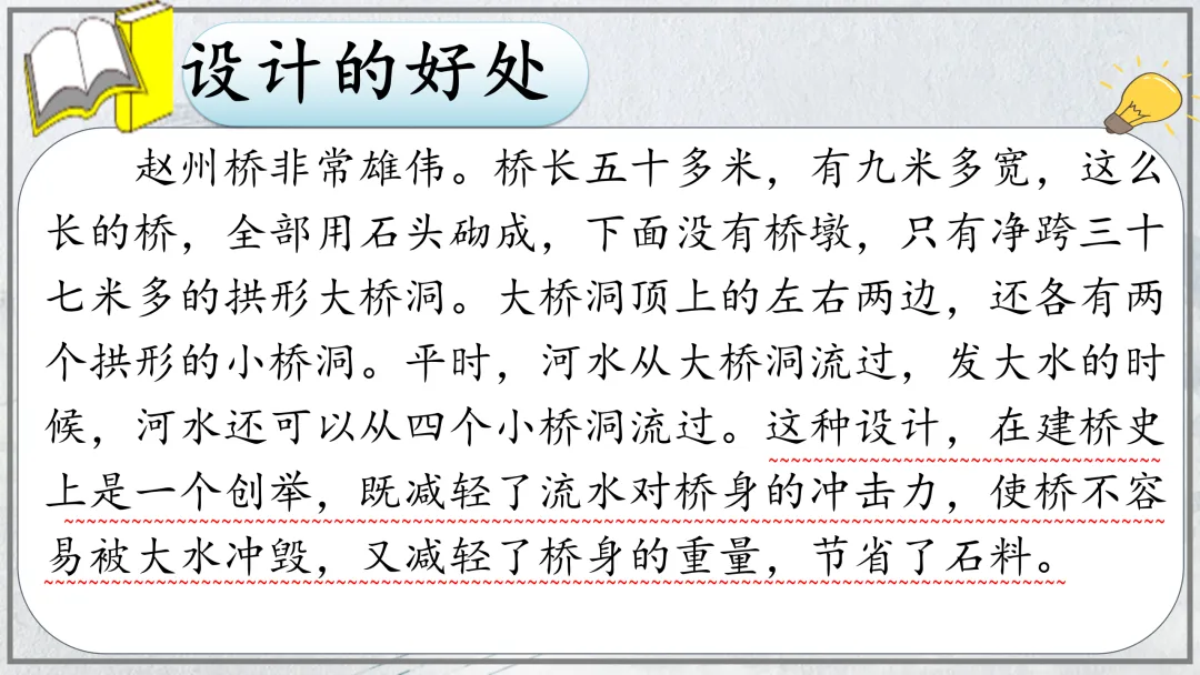 - 初步了解赵州桥,知道赵州桥的设计为什么是建桥史上的创举。