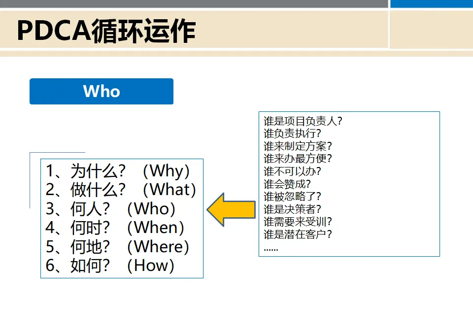 我们要明确:谁来负责这个计划?需要哪些部门配合?采用什么方法来推进?组织架构如何设置?