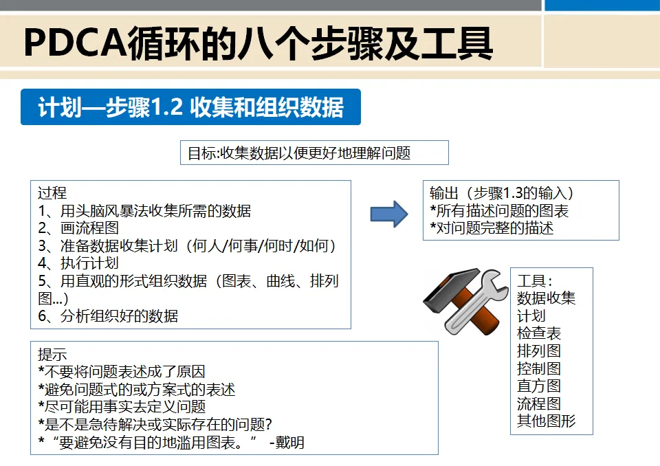 采纳了这个理念并加以宣传推广,使其在全球范围内得到普及。因此,这个循环也被称为"戴明环"。它是全面质量管理所应遵循的科学程序,被广泛应用于各个行业的质量管理工作中。