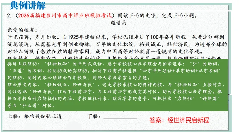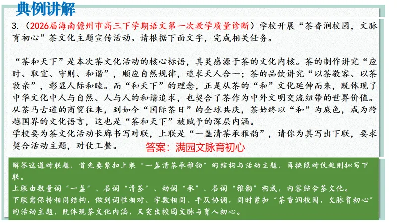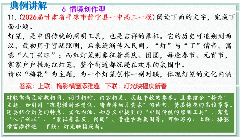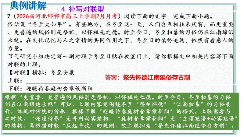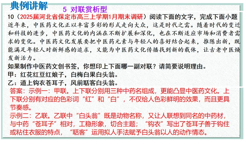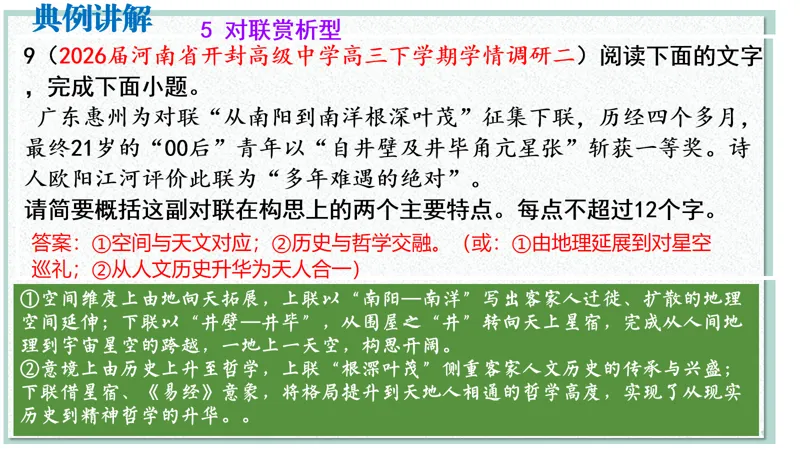 >2026届高考语文二轮 对联复习 精品课件(以月考新题为例)