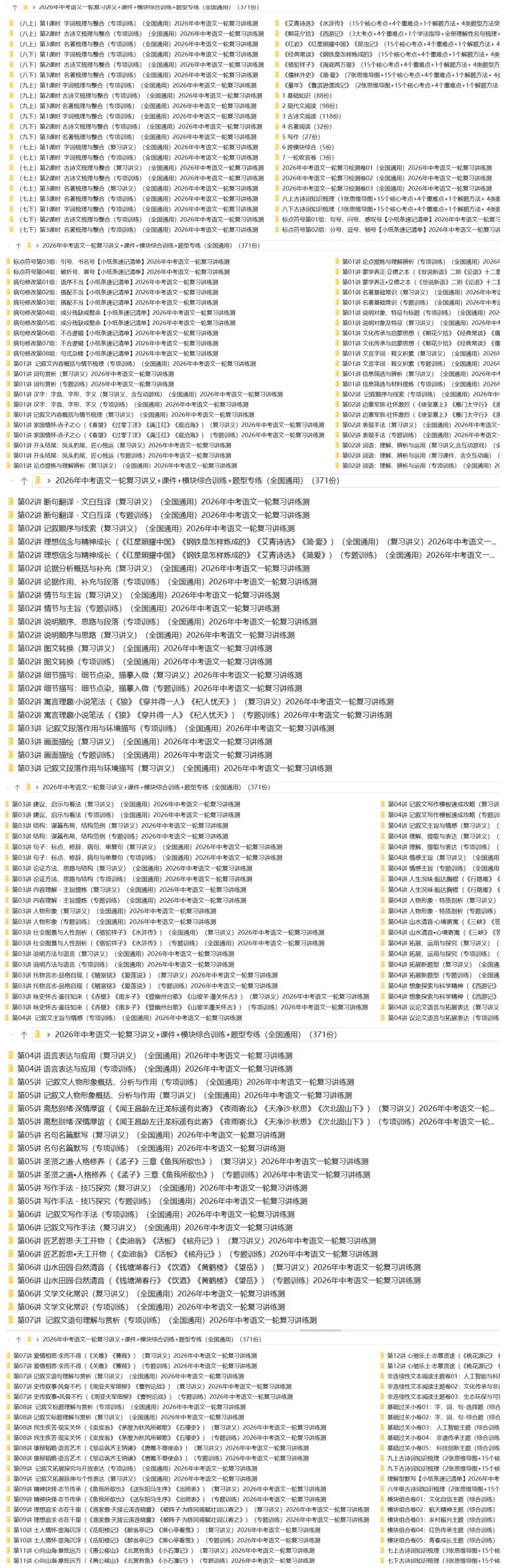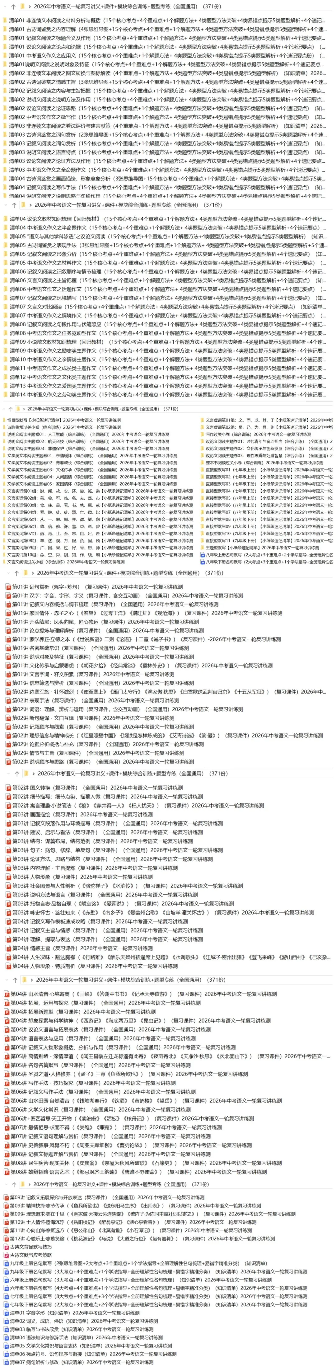 >2026年中考语文:一轮复习讲义+课件+模块综合检测+题型专练+知识速记清单共371份含答案解析(全国通用)完整电子版文档可下载打印
