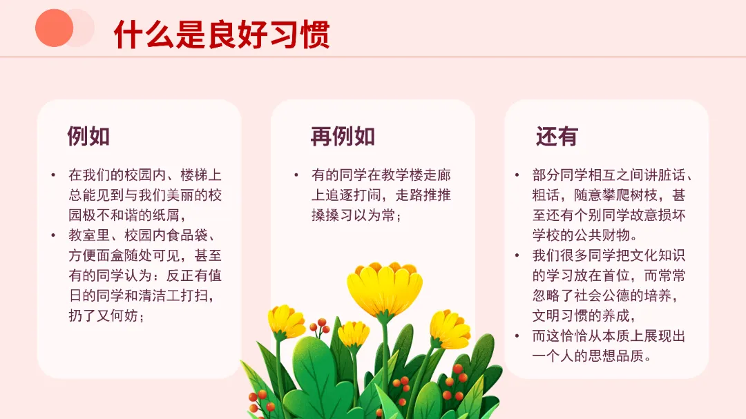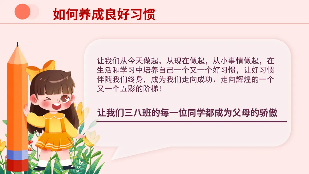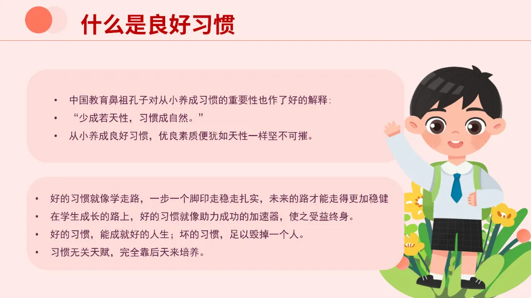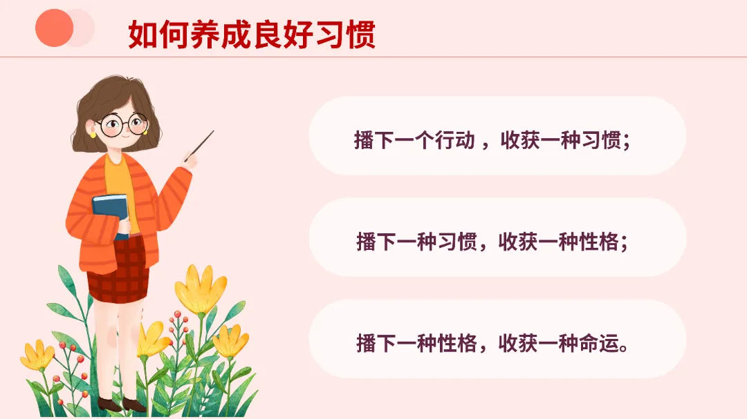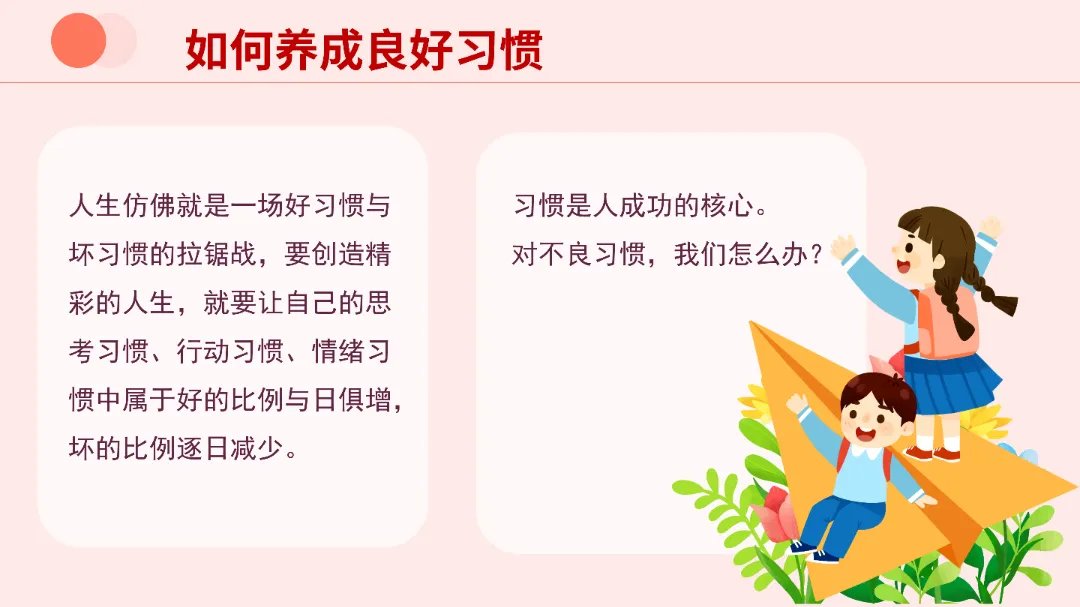【通用】2026春新版习惯培养主题班会课件PPT:培养良好习惯,成就美好人生,部分内容由PPT展示可见。