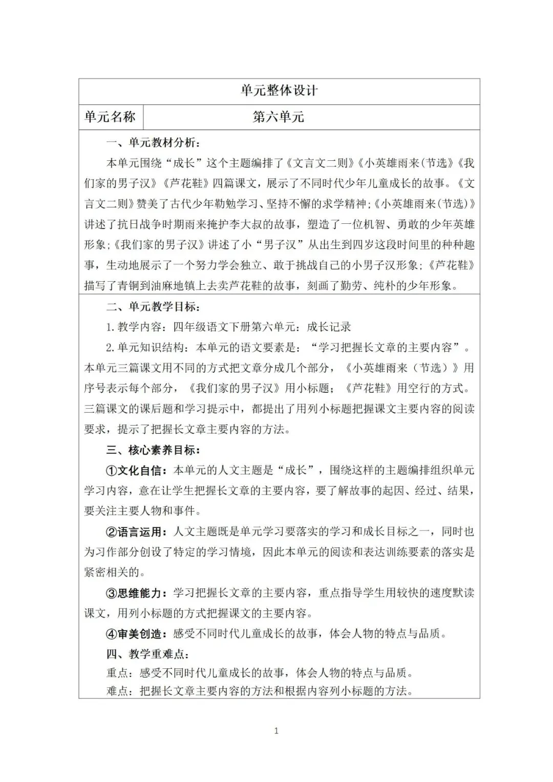 新课标人教版语文四年级下册核心素养教案(全册),可下载!