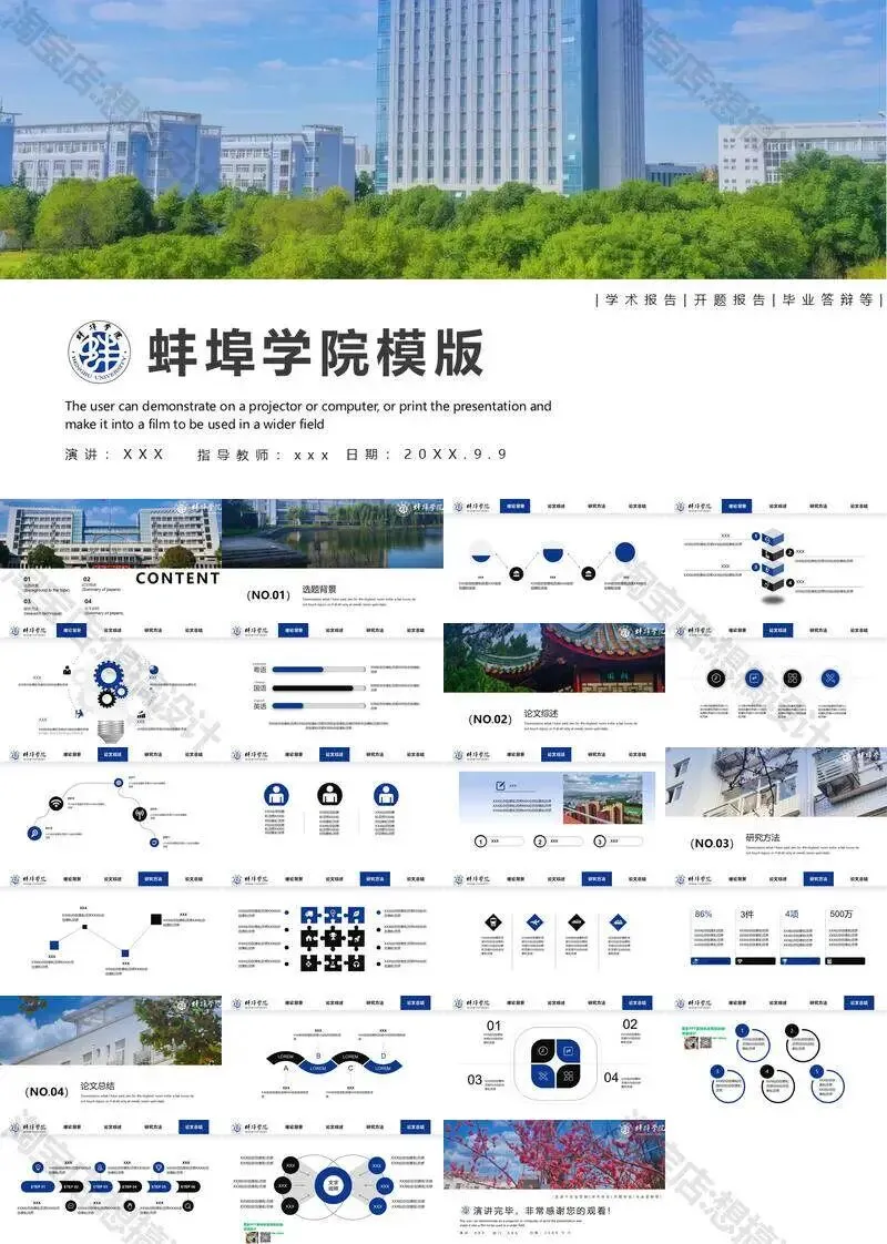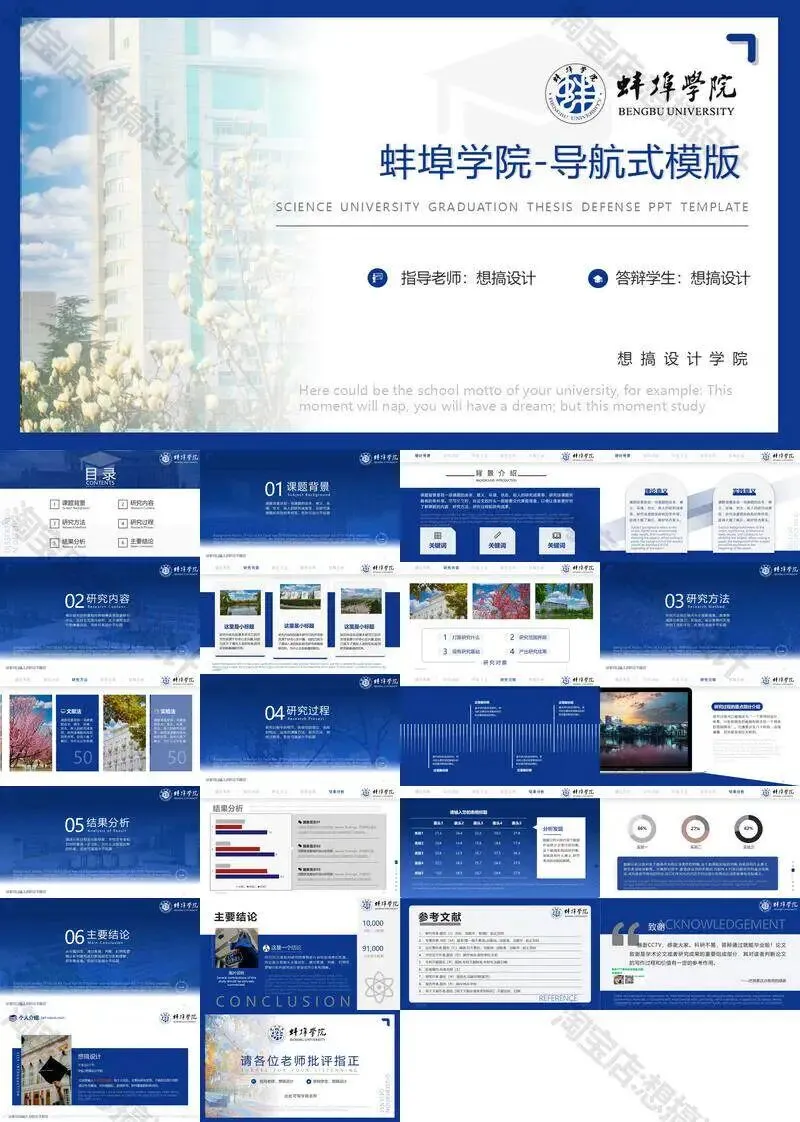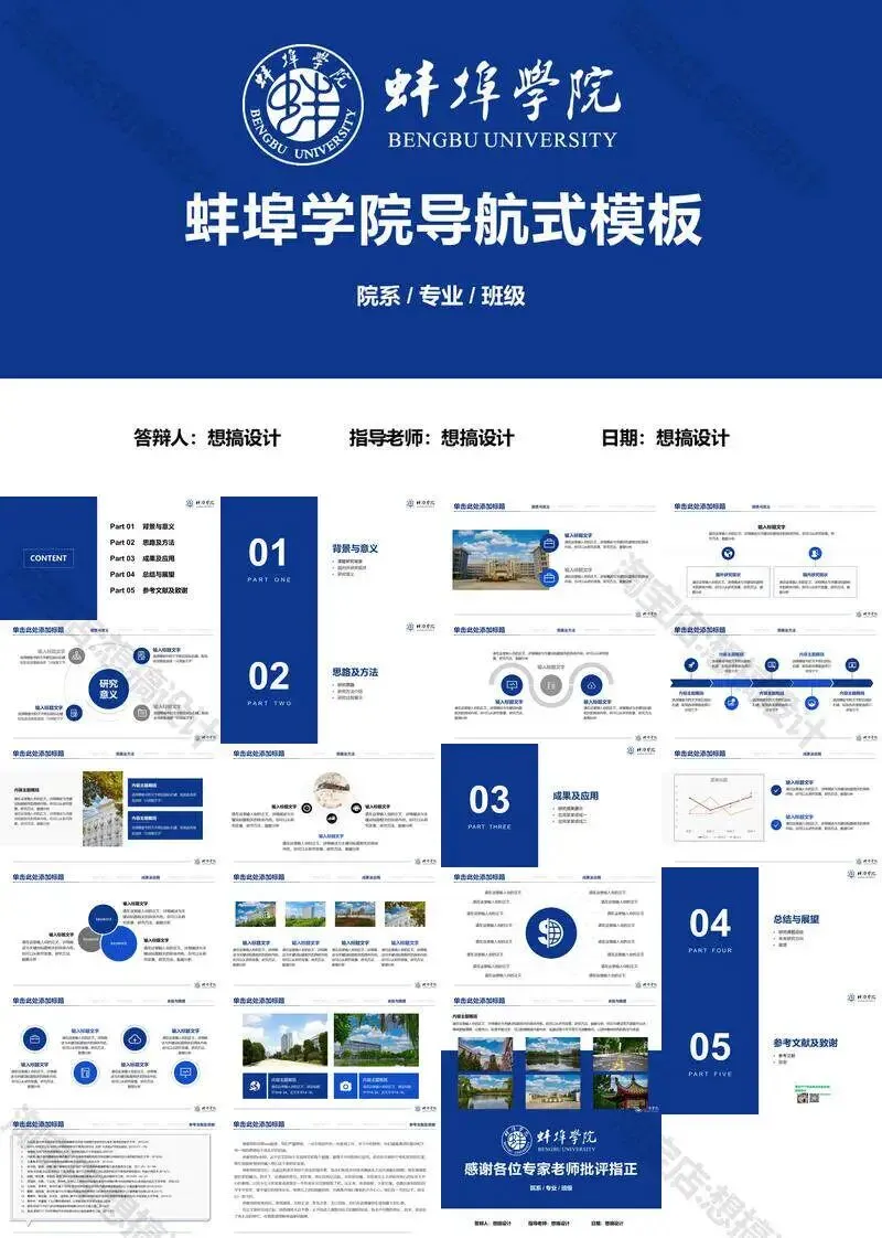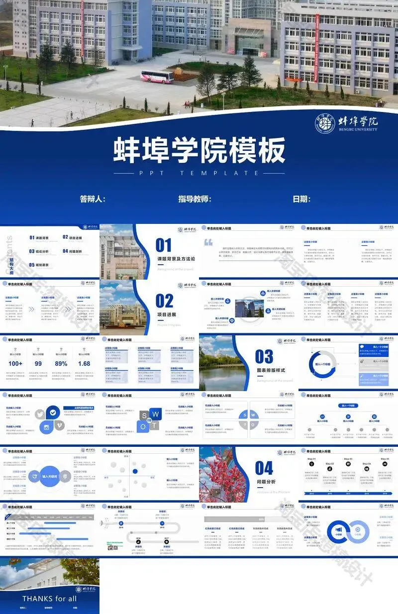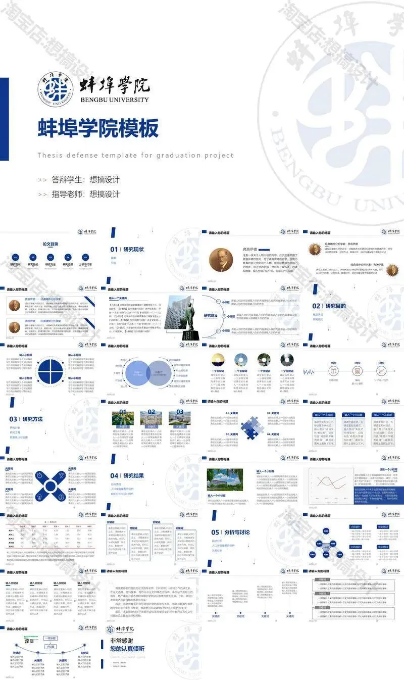 蚌埠学院毕业答辩PPT模板汇报幻灯片课件总结大学生作品集