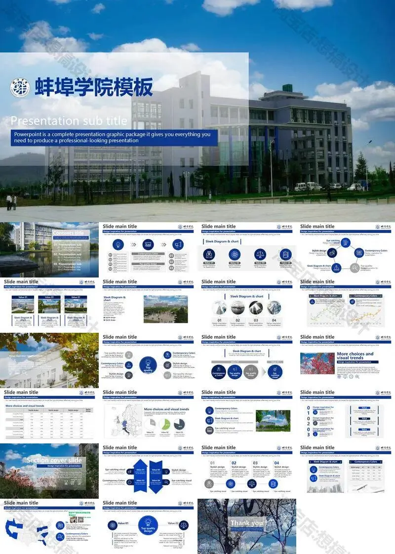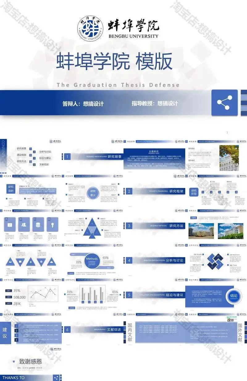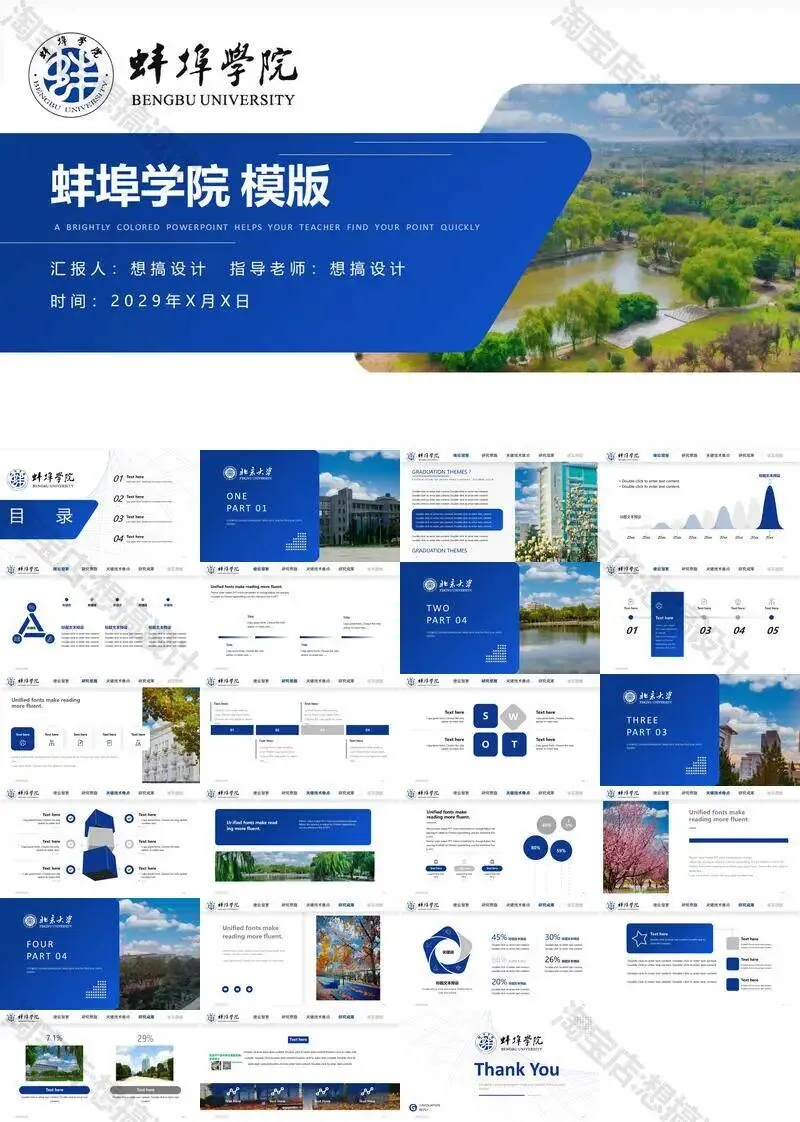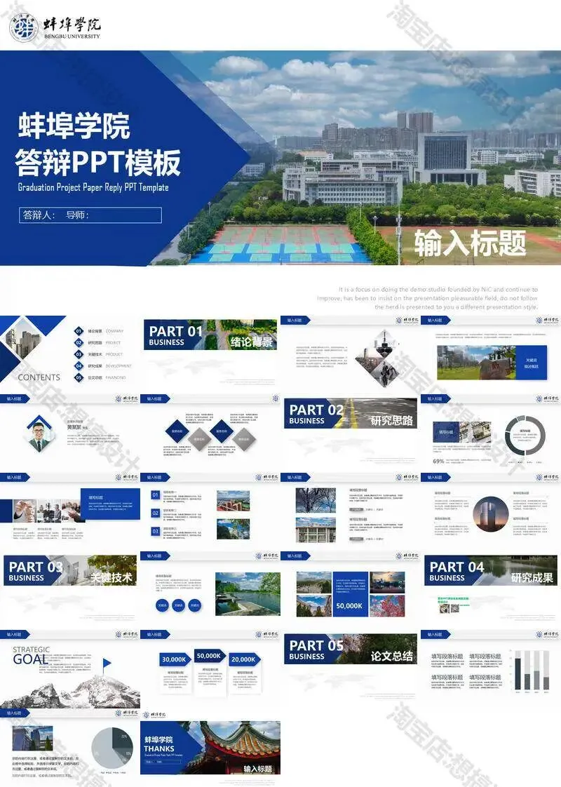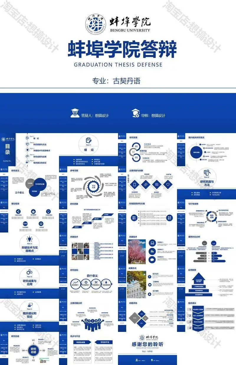 蚌埠学院毕业答辩PPT模板汇报幻灯片课件总结大学生作品集