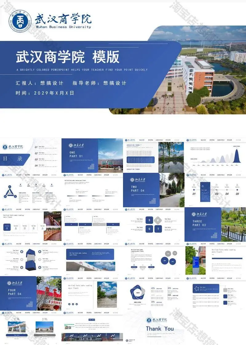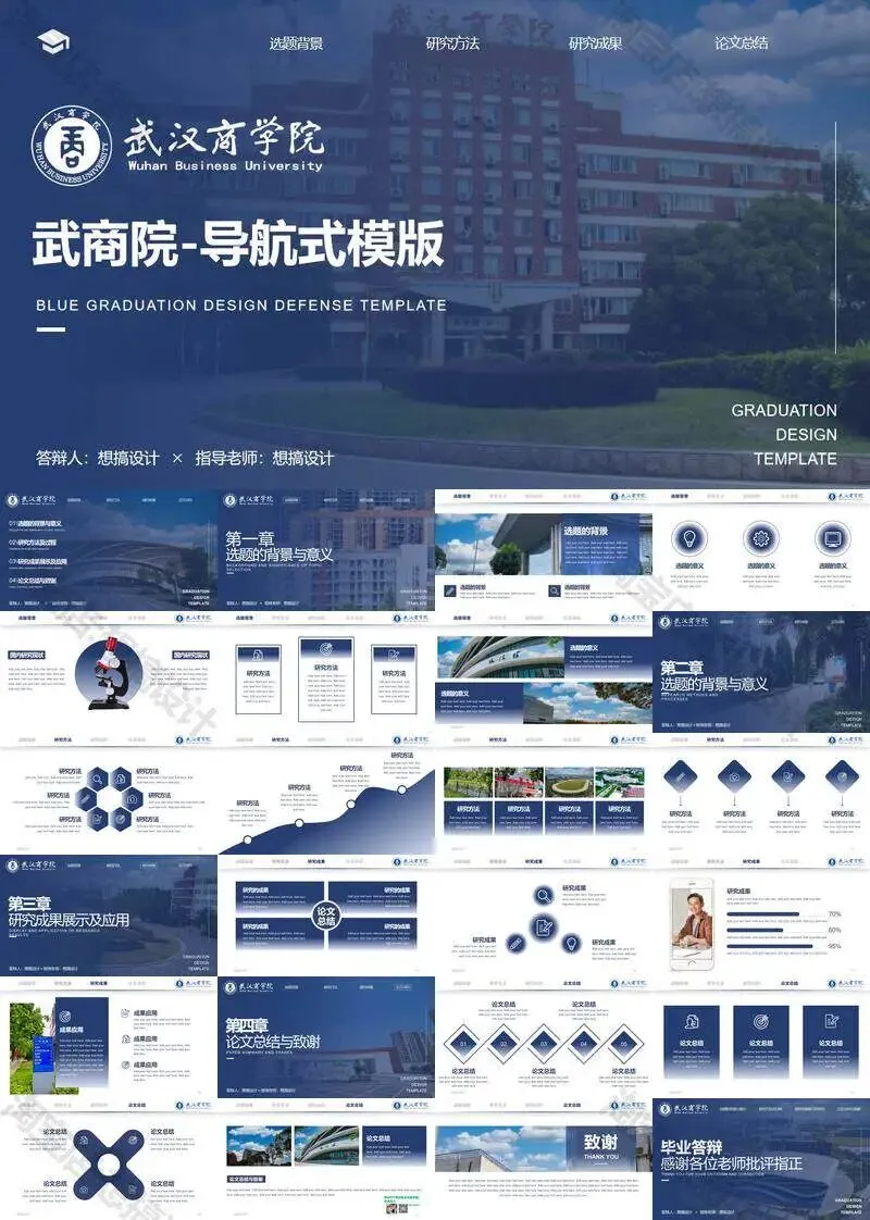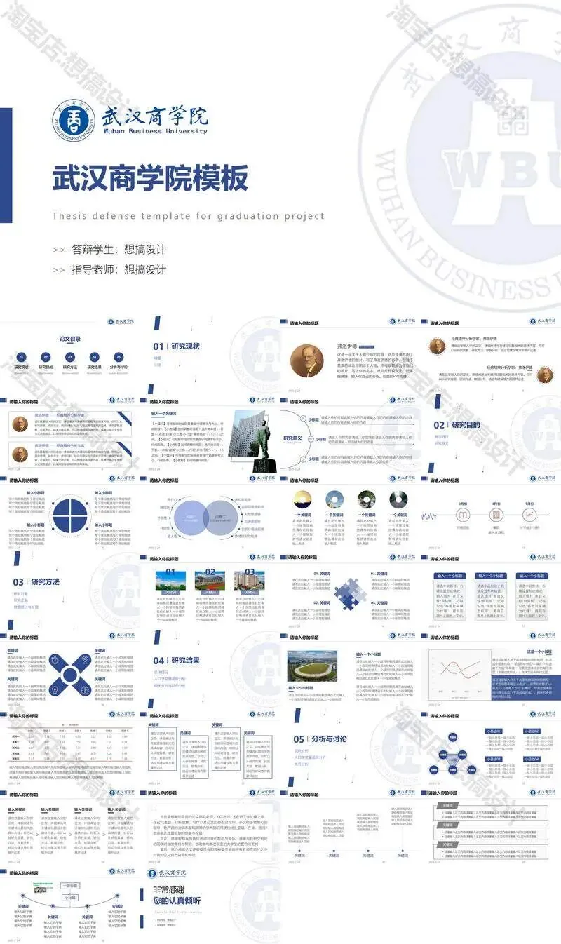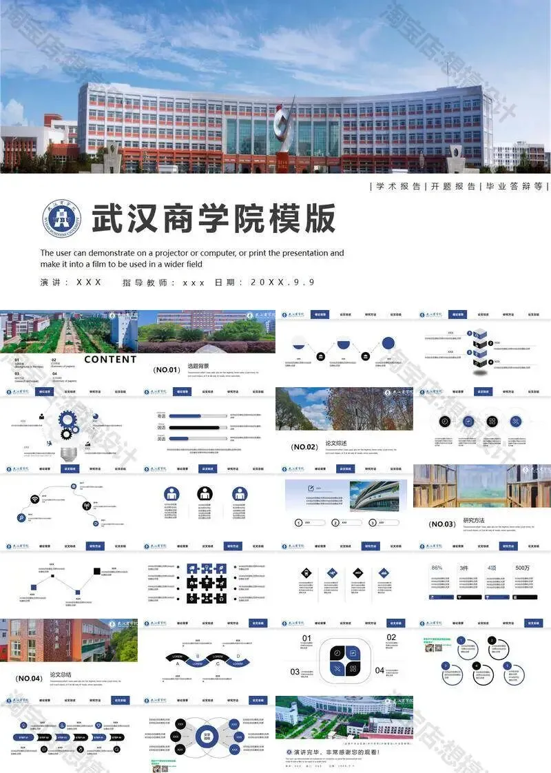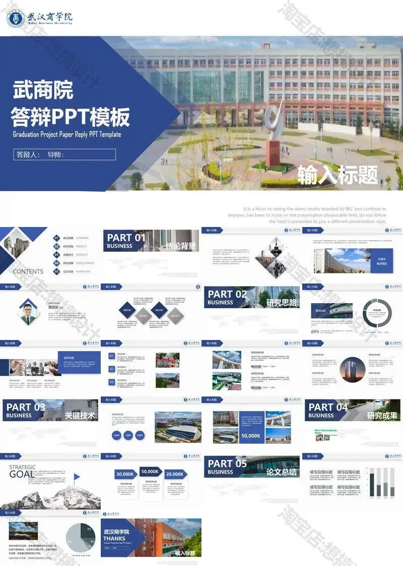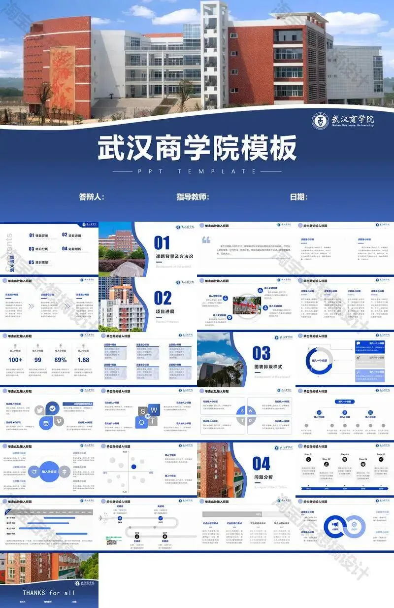 >武汉商学院毕业答辩PPT模板汇报幻灯片课件总结大学生作品集