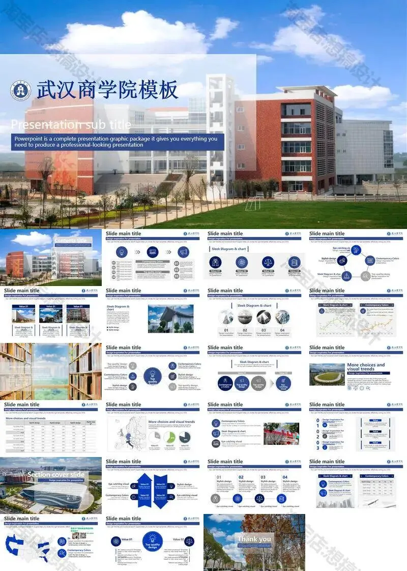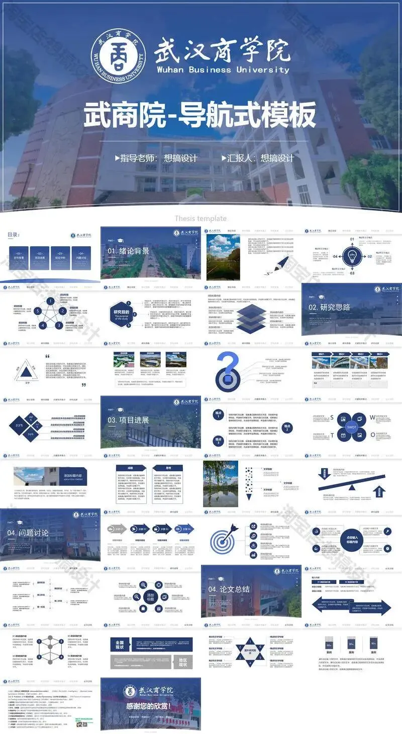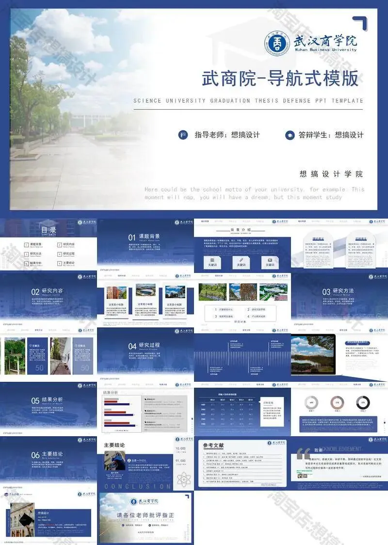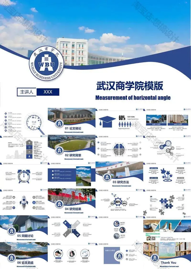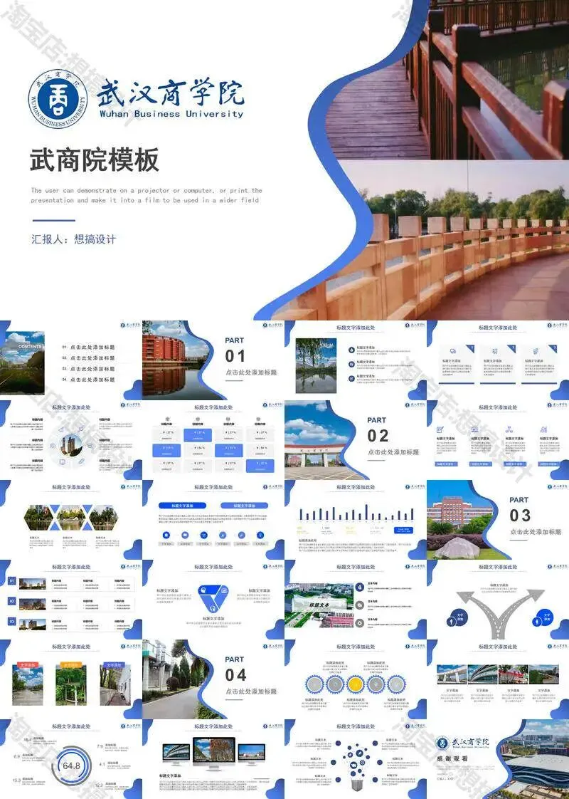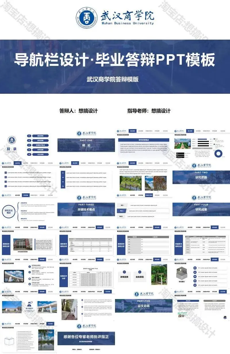 >武汉商学院毕业答辩PPT模板汇报幻灯片课件总结大学生作品集