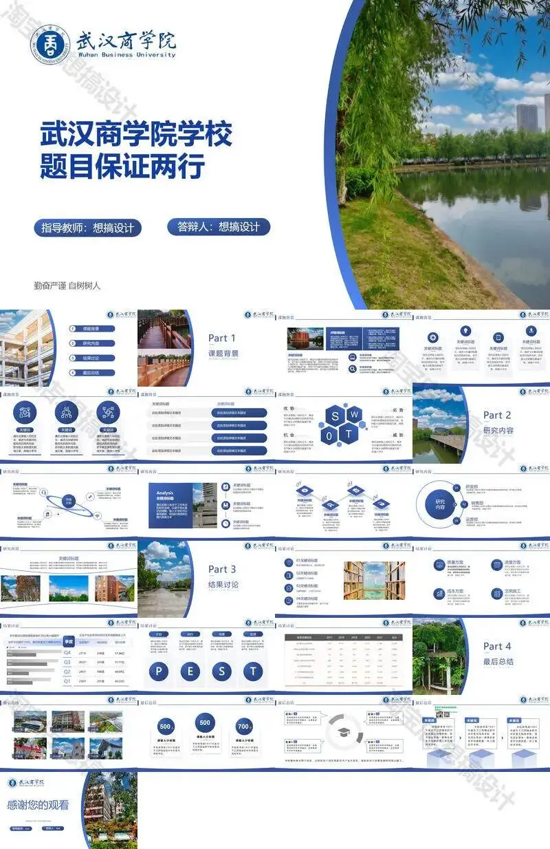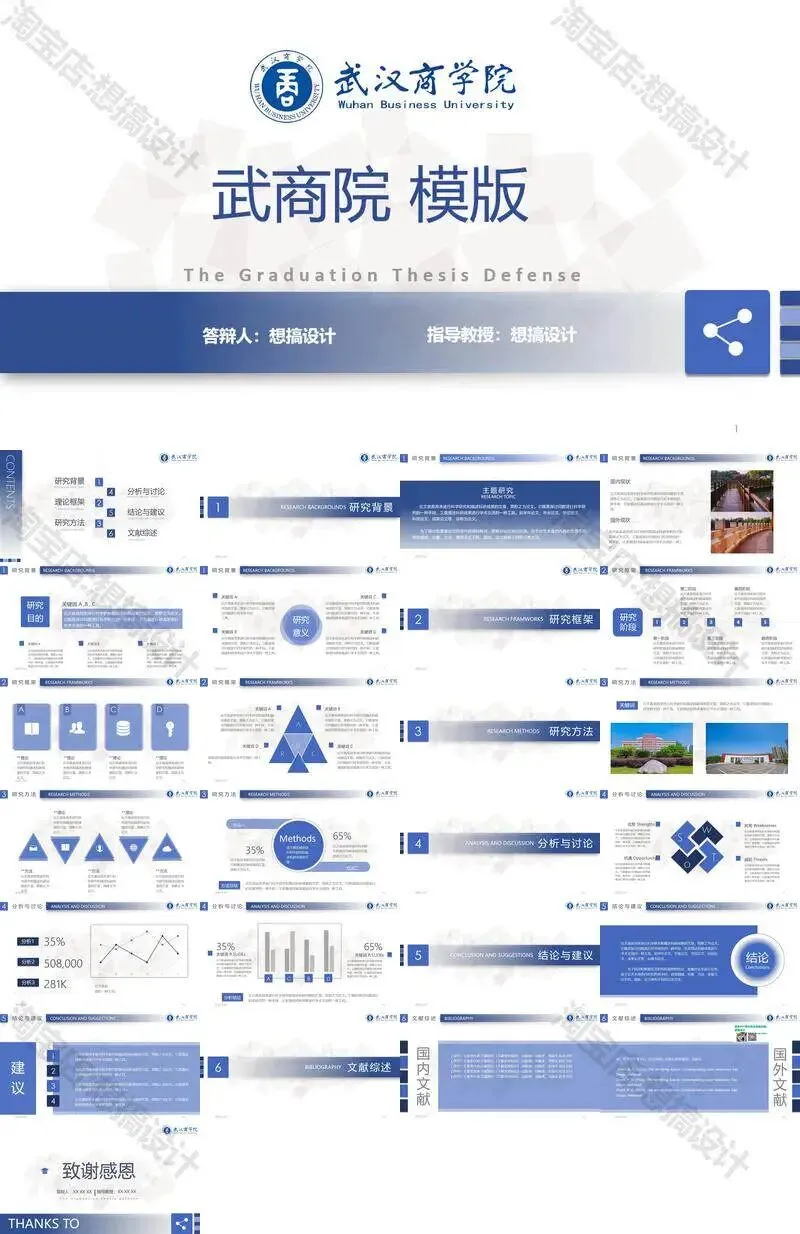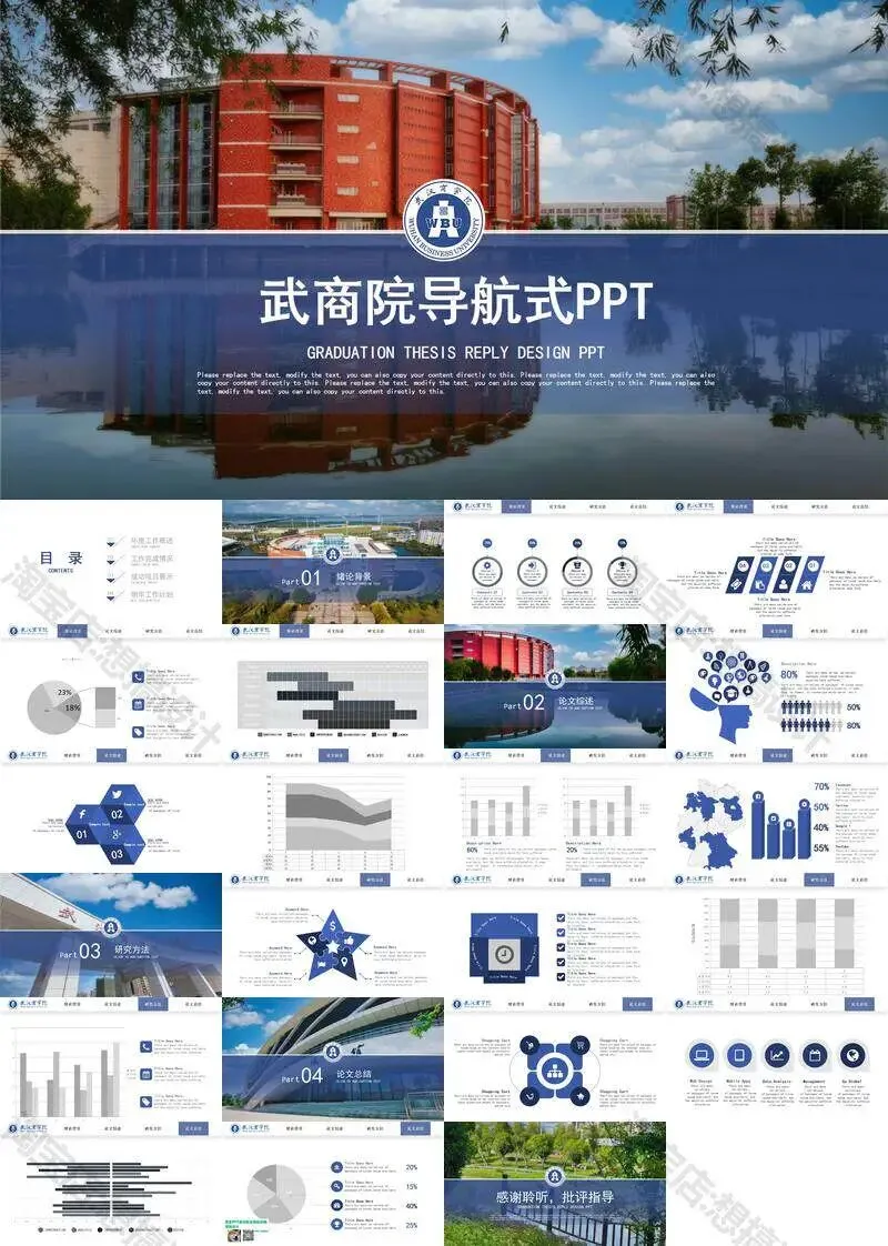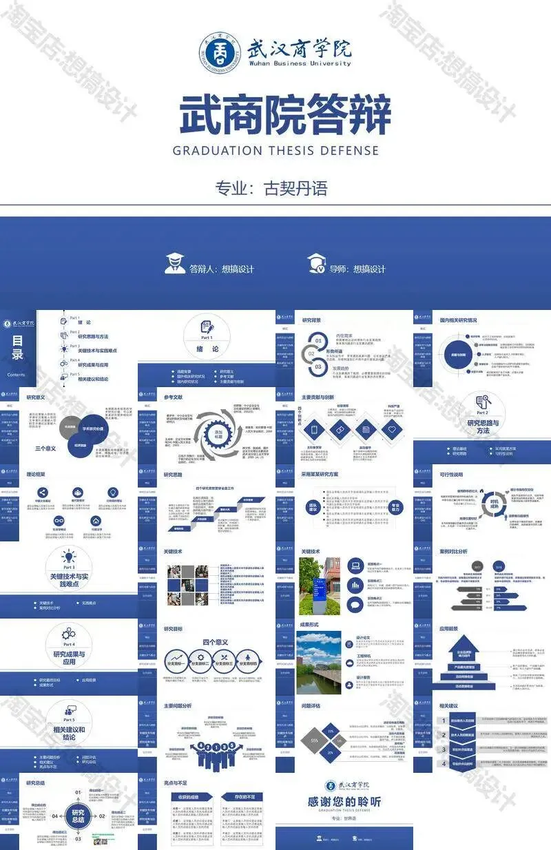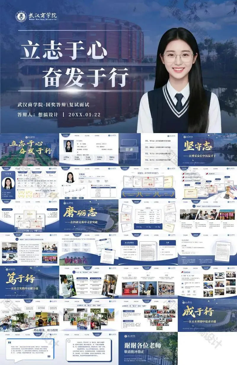 武汉商学院毕业答辩PPT模板汇报幻灯片课件总结大学生作品集