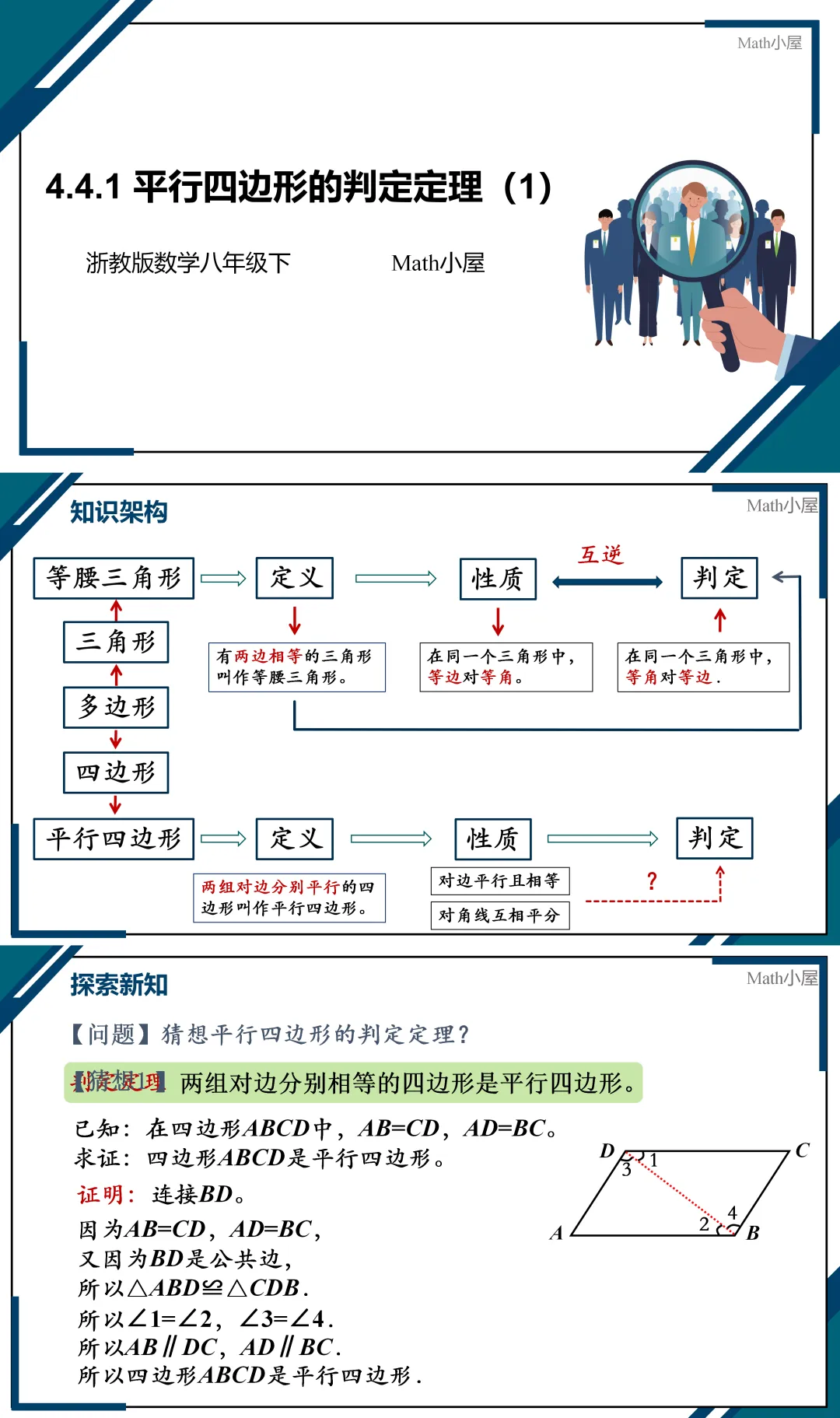 新浙教版八下课件——4.4.1平行四边形的判定定理(1)