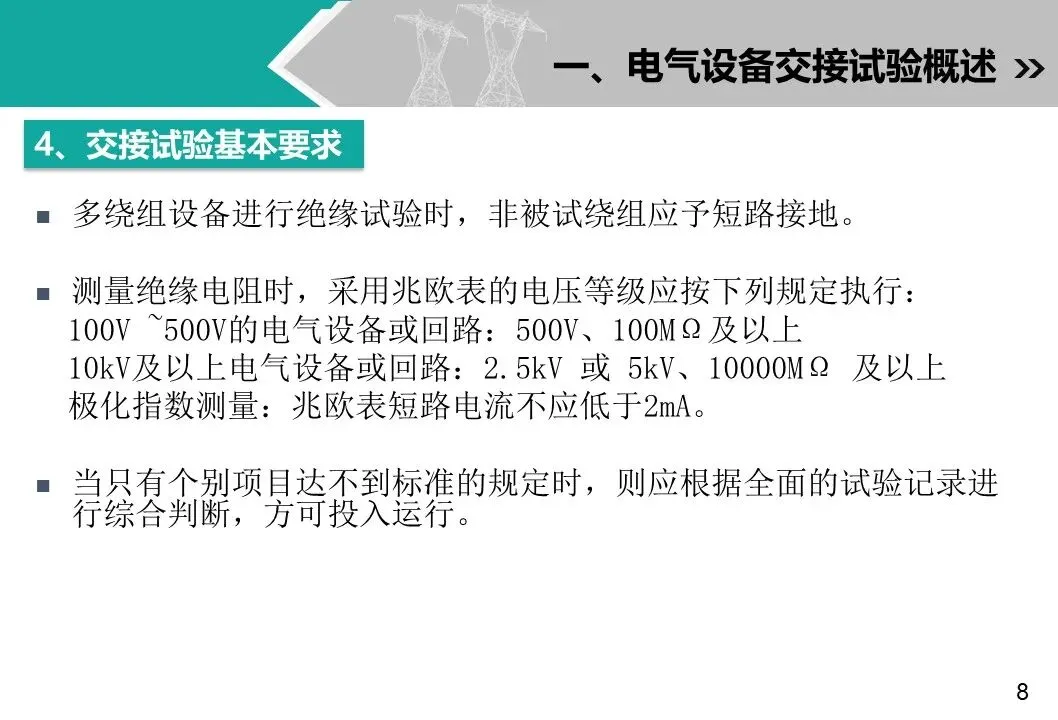 极化指数测量:兆欧表短路电流不应低于2mA。