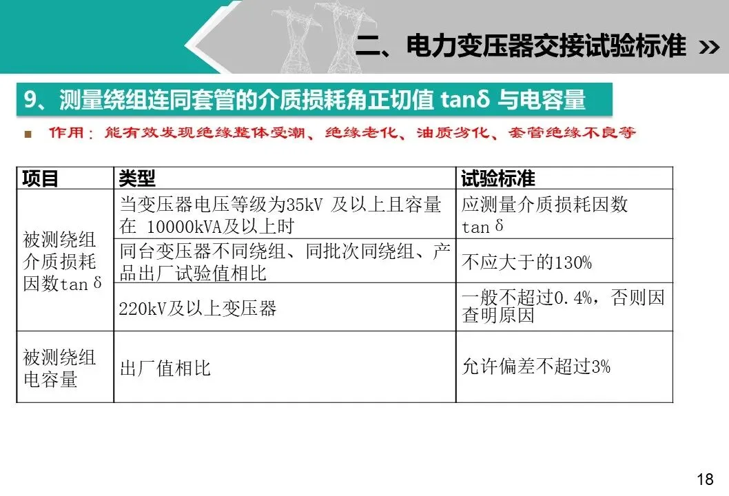 9、 测量绕组连同套管的介质损耗角正切值 tanδ 与电容量;