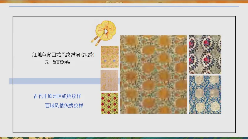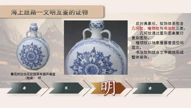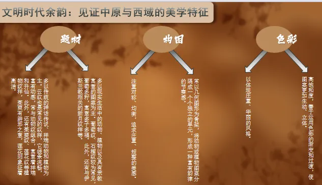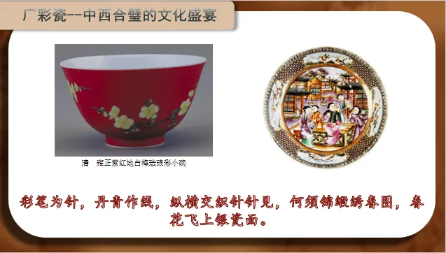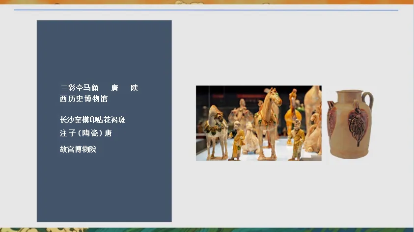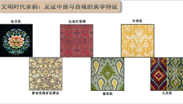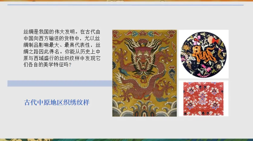 【板书:】织绣陶瓷中原元素异域元素中西合璧