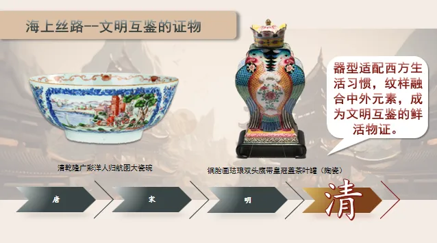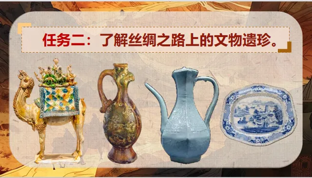 环节小结:通过织绣、陶瓷两类核心文物的细致观察,我们精准识别了其中的中外文化元素,明确丝路文物“中西合璧”的核心视觉特征。