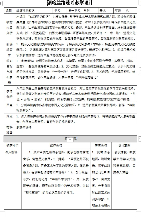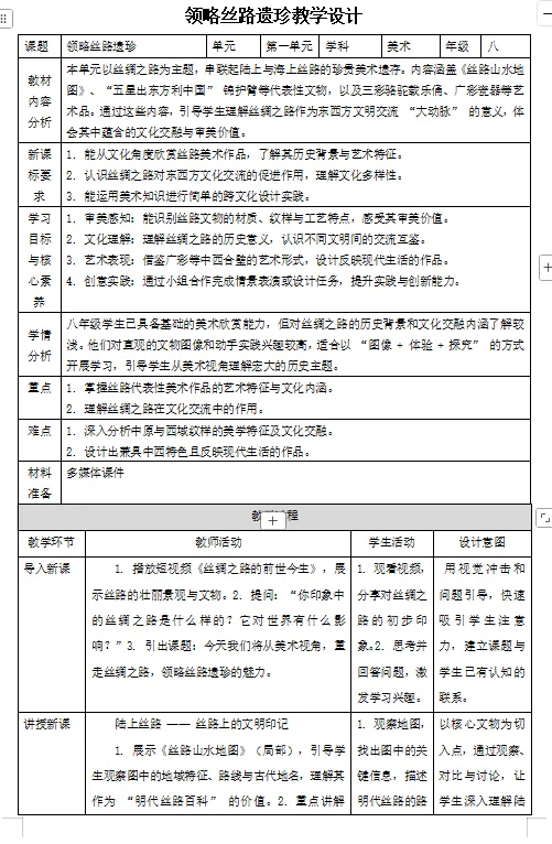 人美版八年级下册教学设计《领略丝路遗珍》