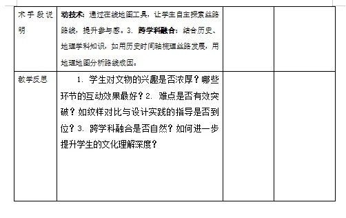 2. 美术表现:运用丝路美术“中西合璧”的创作手法,尝试设计融合中外元素的简单图样或文创雏形,展现对丝路美术风格的理解。