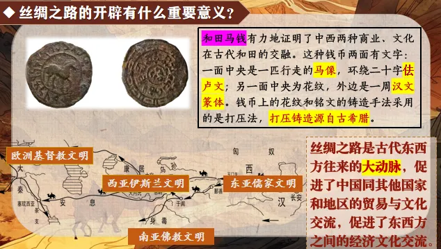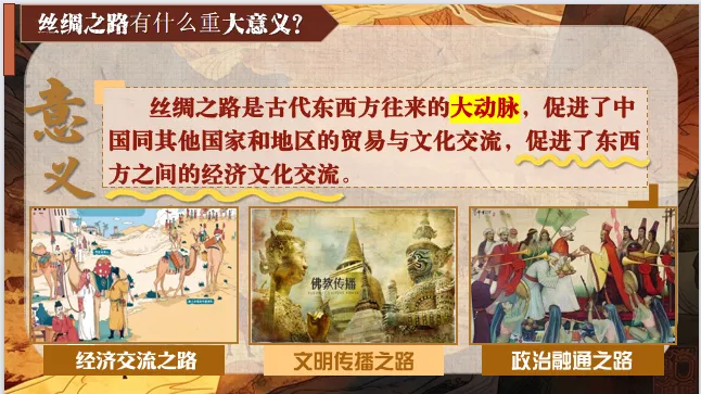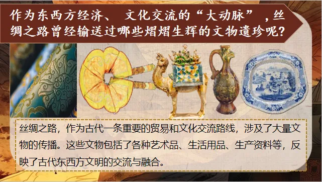 环节小结:通过地图与定义解读,我们明确了丝绸之路的核心定位——连接东西方的文明桥梁,为后续深入探究文物中的文化融合奠定了背景基础。