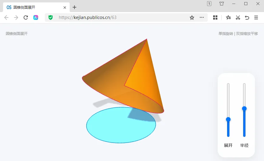 本次全新上线【圆锥侧面展开】,通过形象生地地交互操作,圆锥展开为一个平面,好玩又有趣,课件访问地址:https://kejian.publicos.cn/63(复制到浏览器打开)