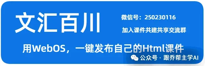 针对 AI 课件制作、发布、共享的三大核心痛点,我们依托文汇百川 WebOS 搭建了中小学课件共建共享平台,打造一站式网页课件管理解决方案,汇聚全国中小学优质课件资源,让备课更轻松!同时平台不仅限于课件,还可以完全满足老师和学生们的各类稀奇古怪的想法