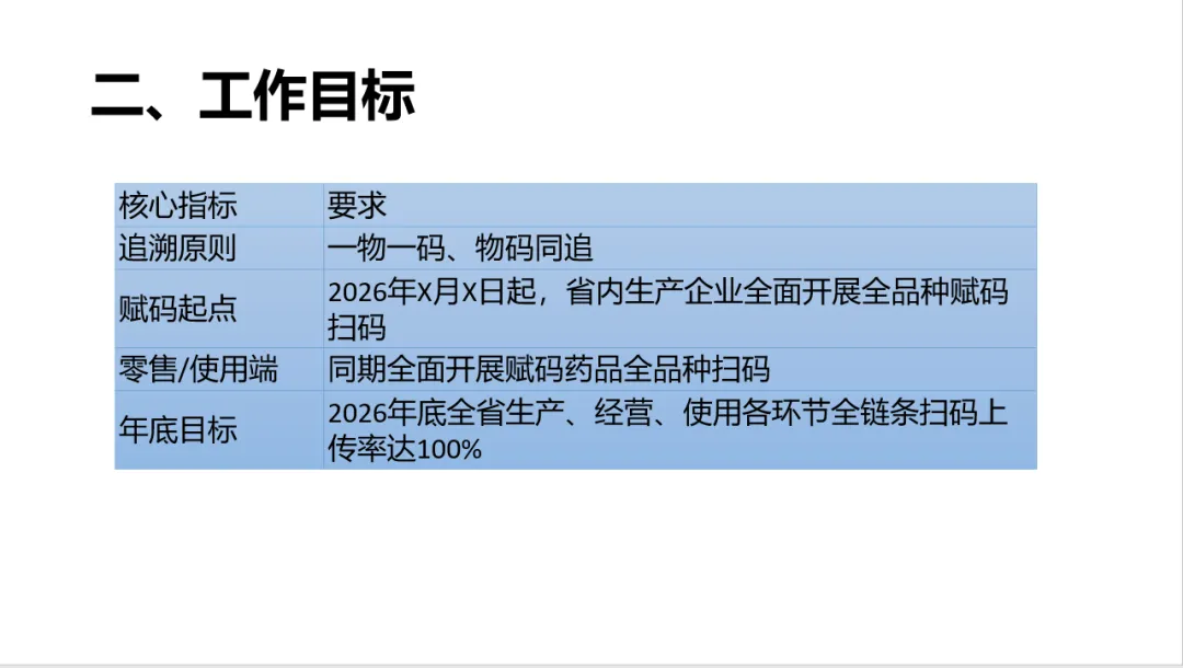覆盖全省药品生产企业、批发企业、零售连锁总部及医疗机构,要求所有赋码药品进行出入库扫码。