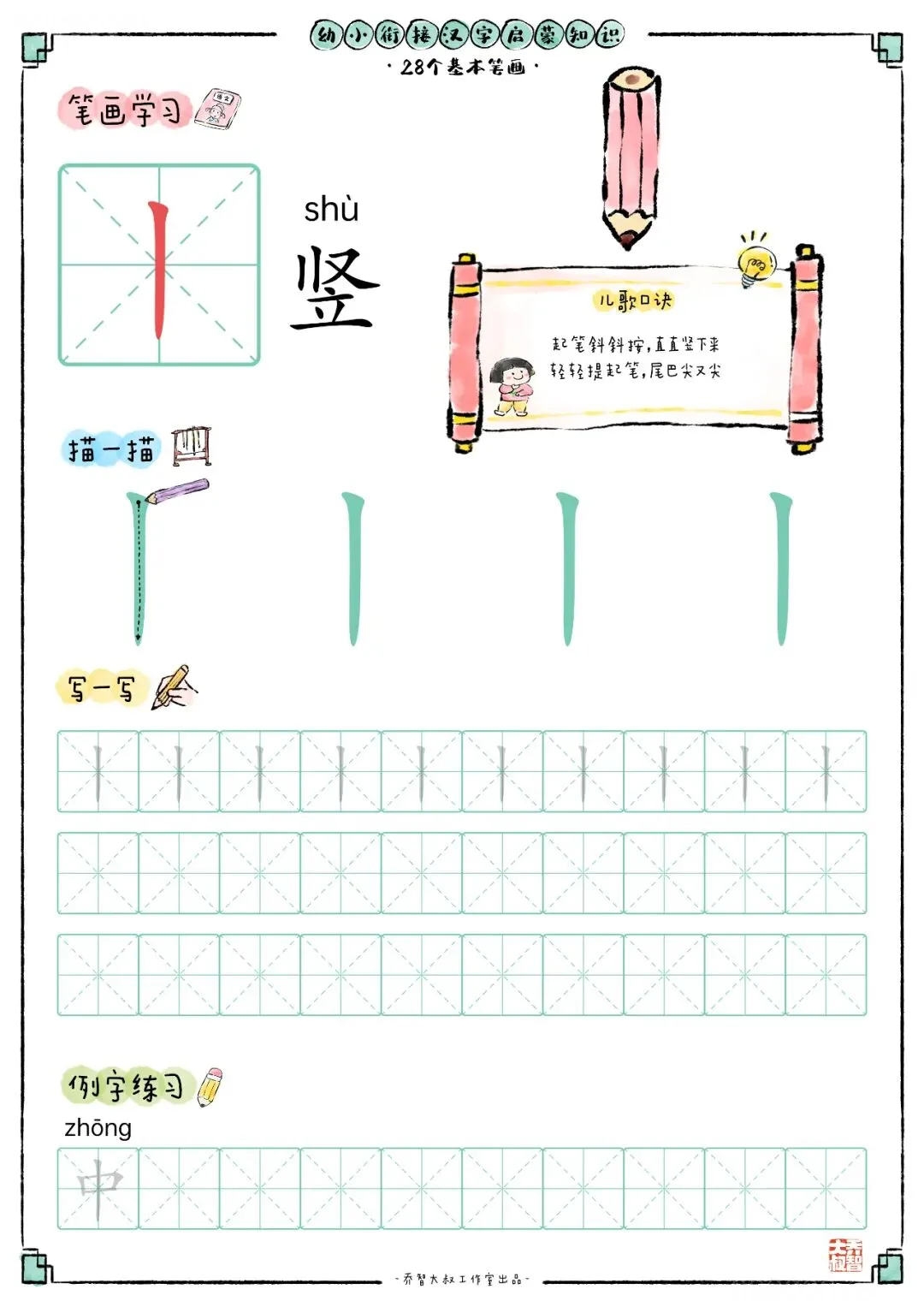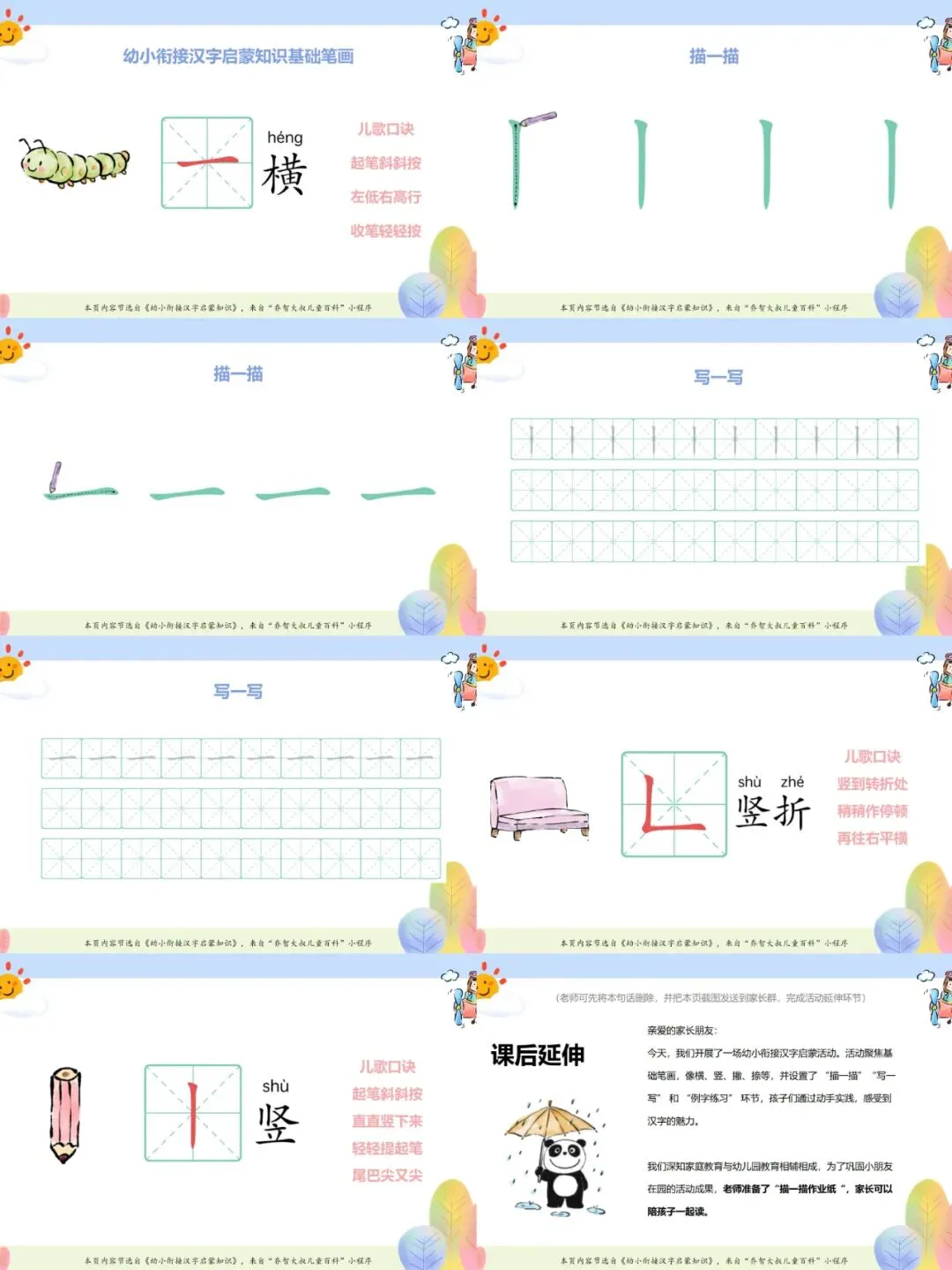>幼小衔接汉字启蒙知识课件包:含ppt课件+教案+笔画学习练习纸