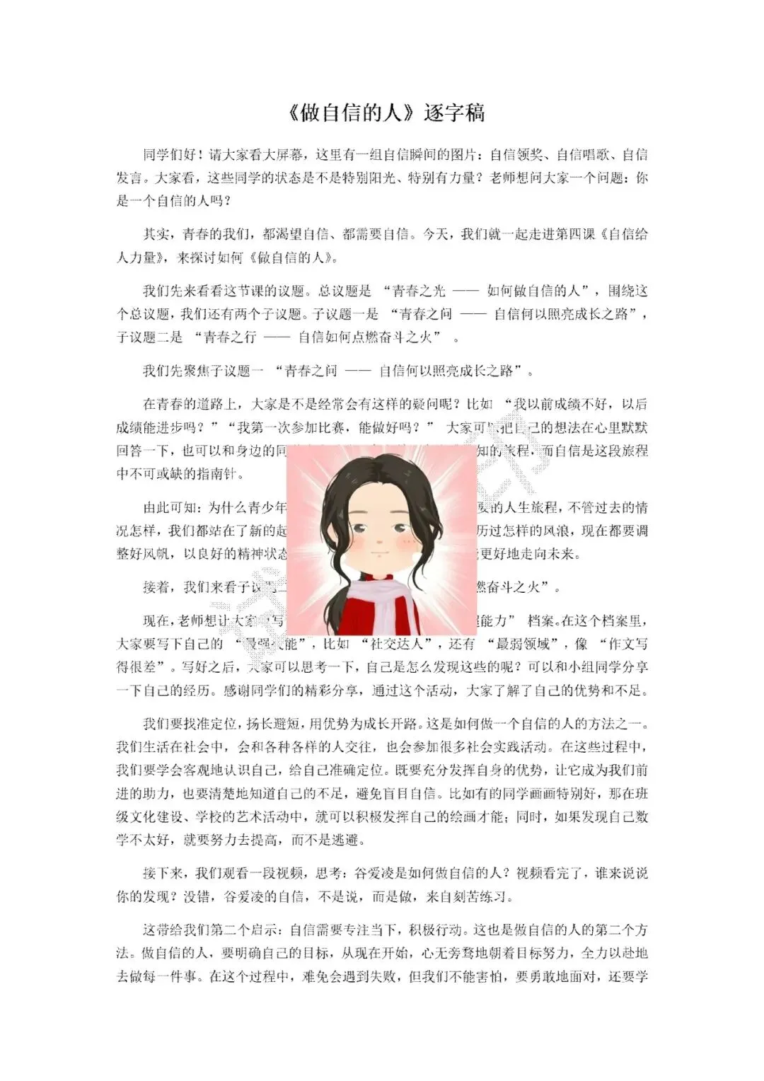 【【数字人讲解】道法七下4.2做自信的人(课件+教学设计+逐字稿)】 https://www.bilibili.com/video/BV1rRXLBjEJ7/?share_source=copy_web&vd_source=f6bb964ea9ac908e660f66d4f72b4beb