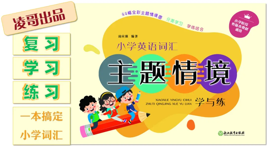 接下来,六年级其实可以进入小学总复习了,您为孩子们准备了什么复习材料呢?关于词汇的积累、复习和运用,凌哥一直向您推荐自己编写的《小学英语词汇主题情境学与练》,并不是自吹自擂,因为这本书完全体现了凌哥的词汇教学理念。据说有一所学校的英语老师向家长推荐了凌哥的这本书,她的学生们在英语毕业考中取得了很好的成绩。当然,质量好不好,一定要认真试读、试用才能亲自知道哦!下面是一些样页,您可以亲自做一下。
