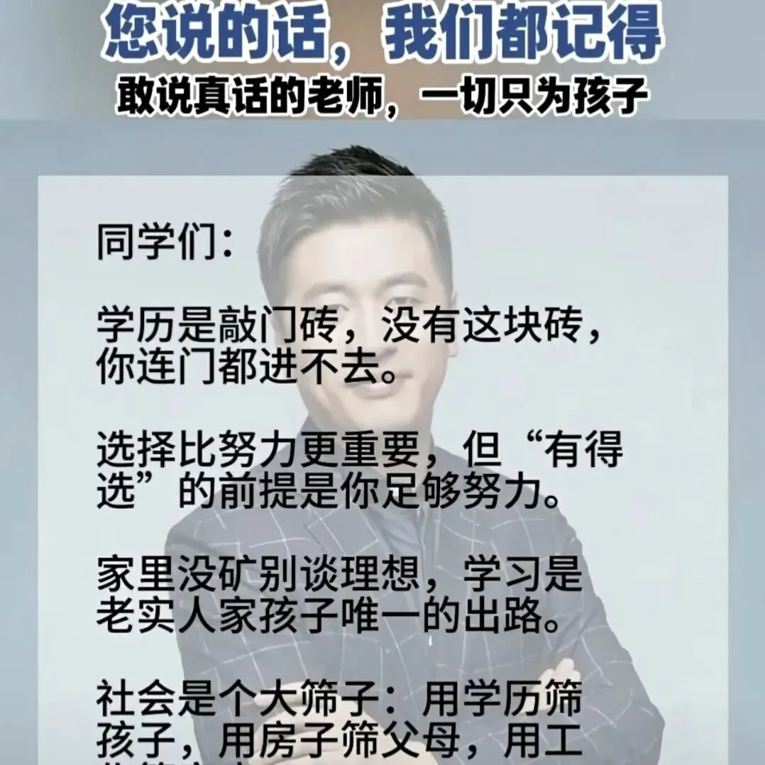 那天晚上,我翻出张雪峰老师的视频,又看了一遍。他讲学校,讲专业,讲就业,讲那些普通家庭的孩子该怎么选路。他说得对。那些信息,对城里孩子来说是常识,对农村孩子来说是门。他做的事,就是把门推开,让后面的人看见路。