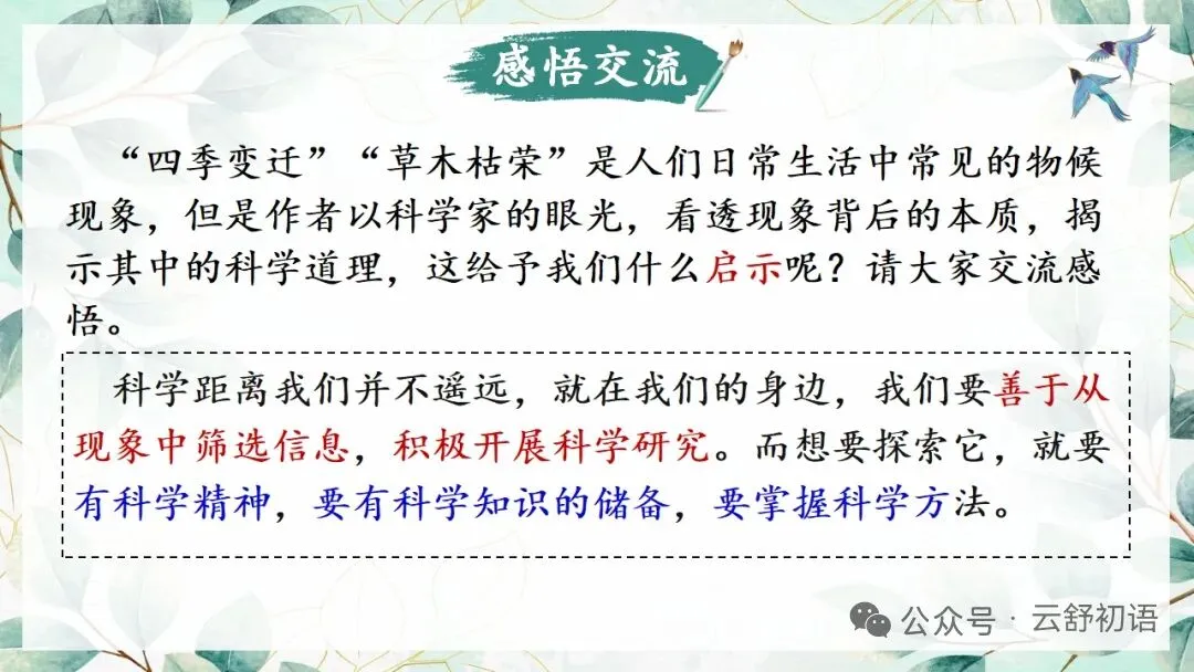 任务一 感知物候,理清说明顺序