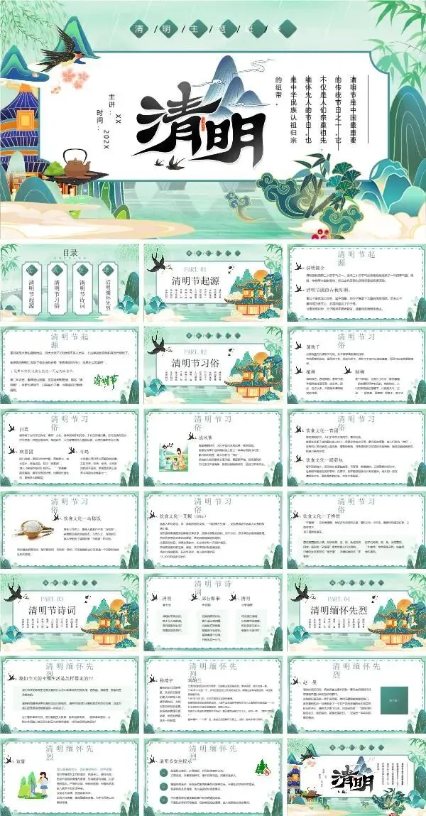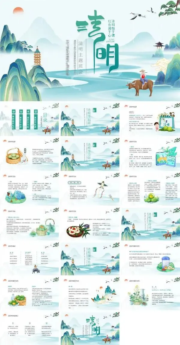 篇幅有限,以上仅为部分素材展示,更多清明节ppt课件,获取方式如下: