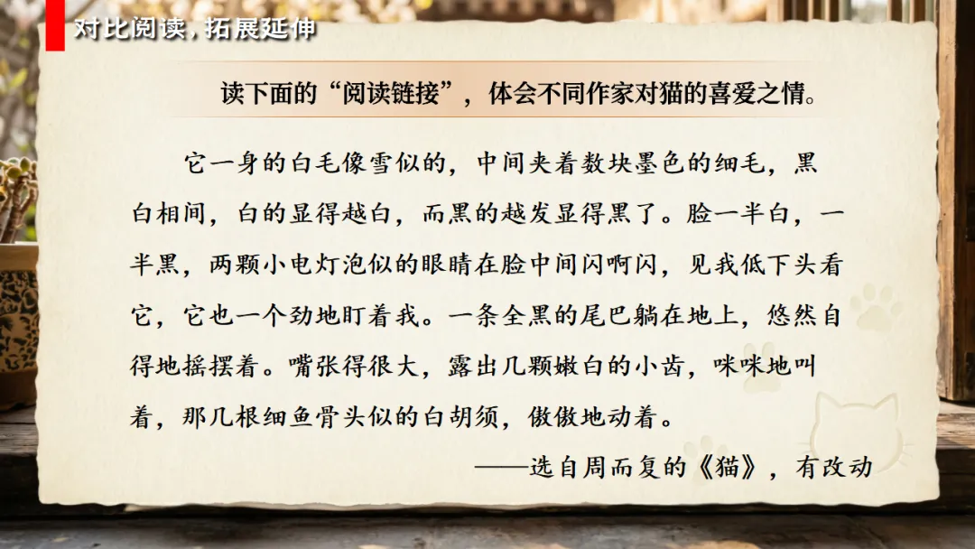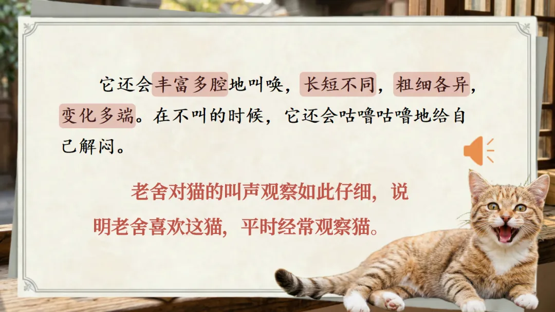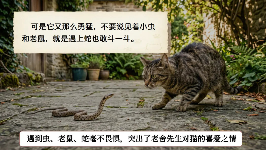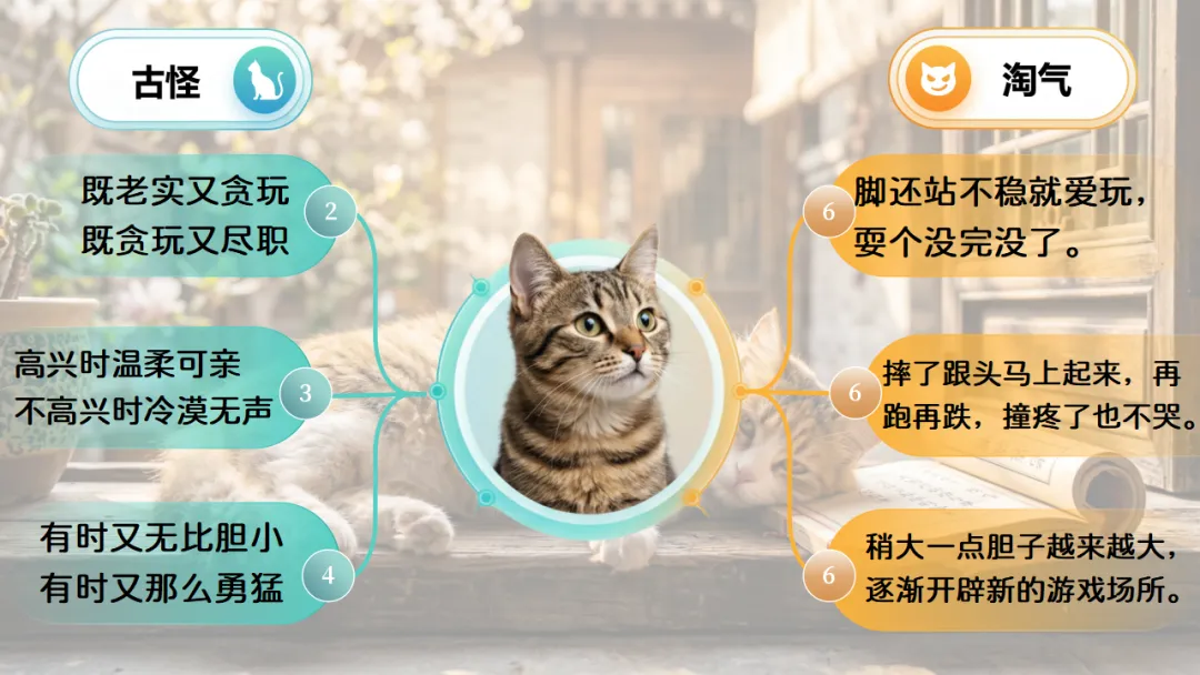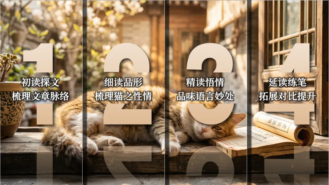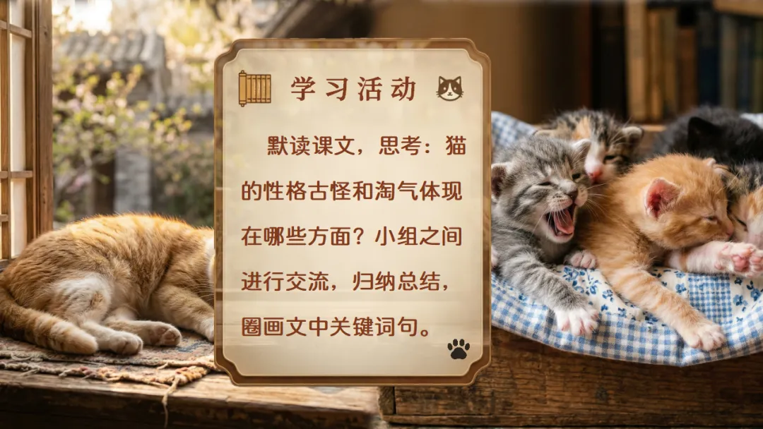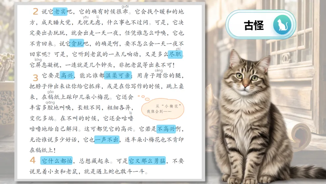 >四下《猫》AI赋能课件 | 品猫性古怪淘气,悟老舍笔墨温情(课件+AI视频+教案)