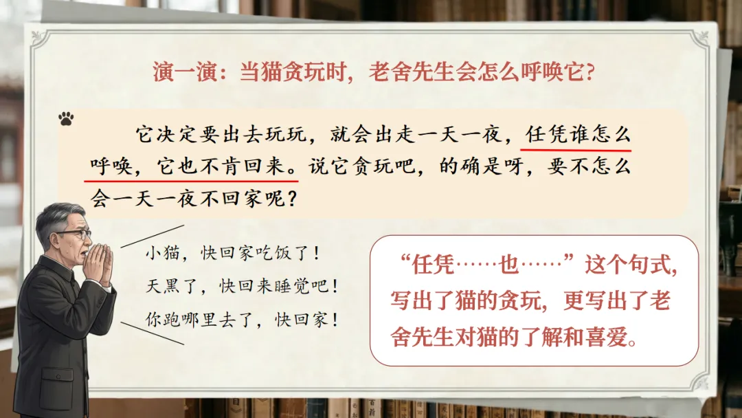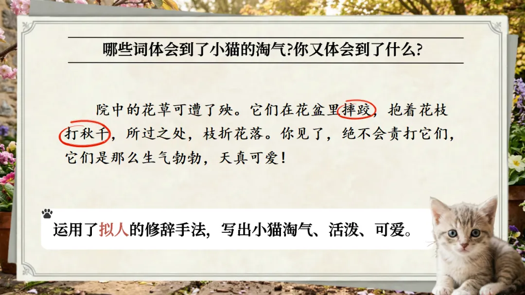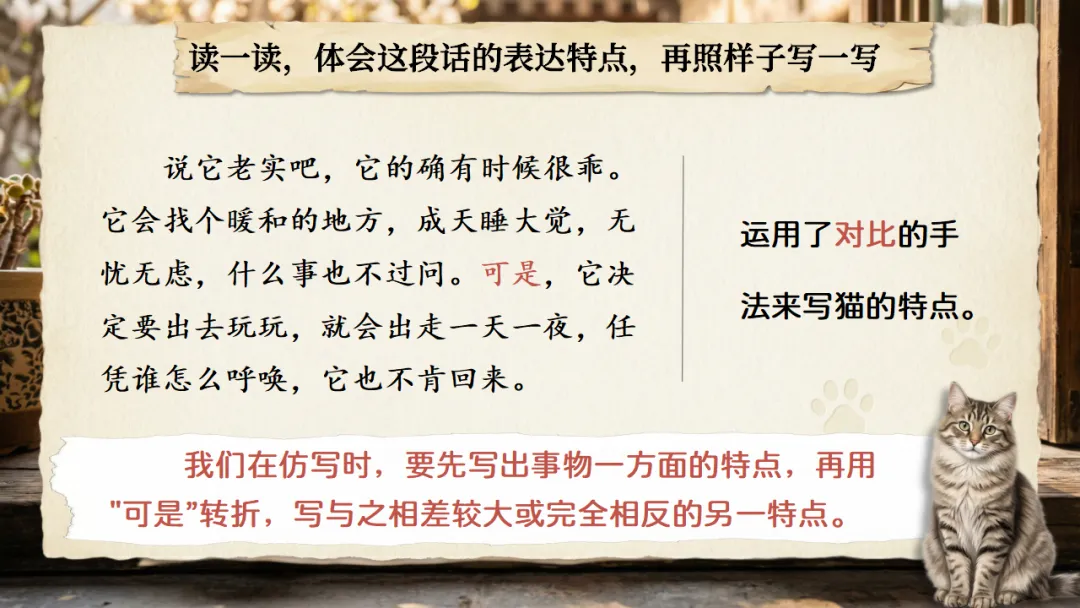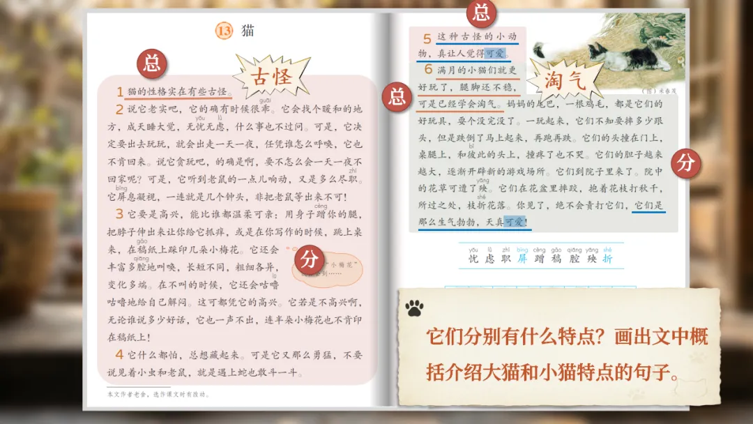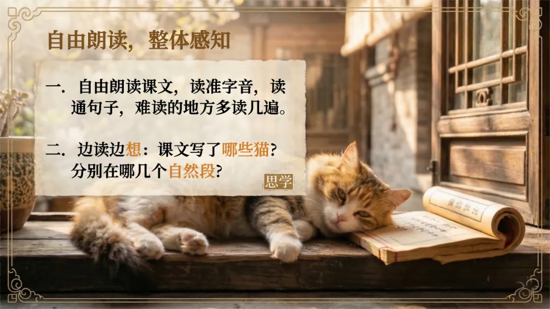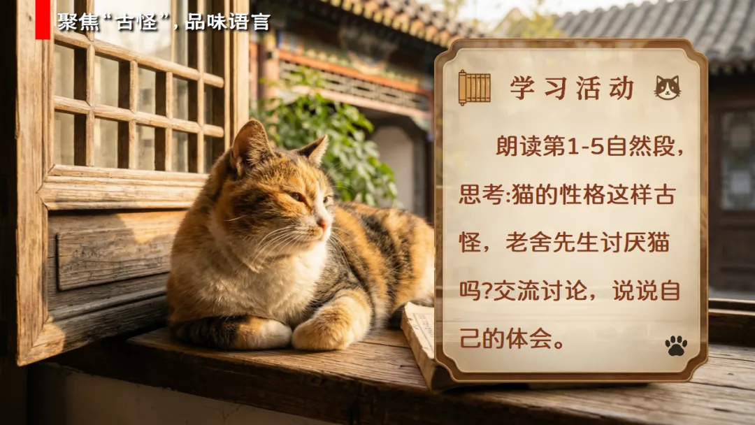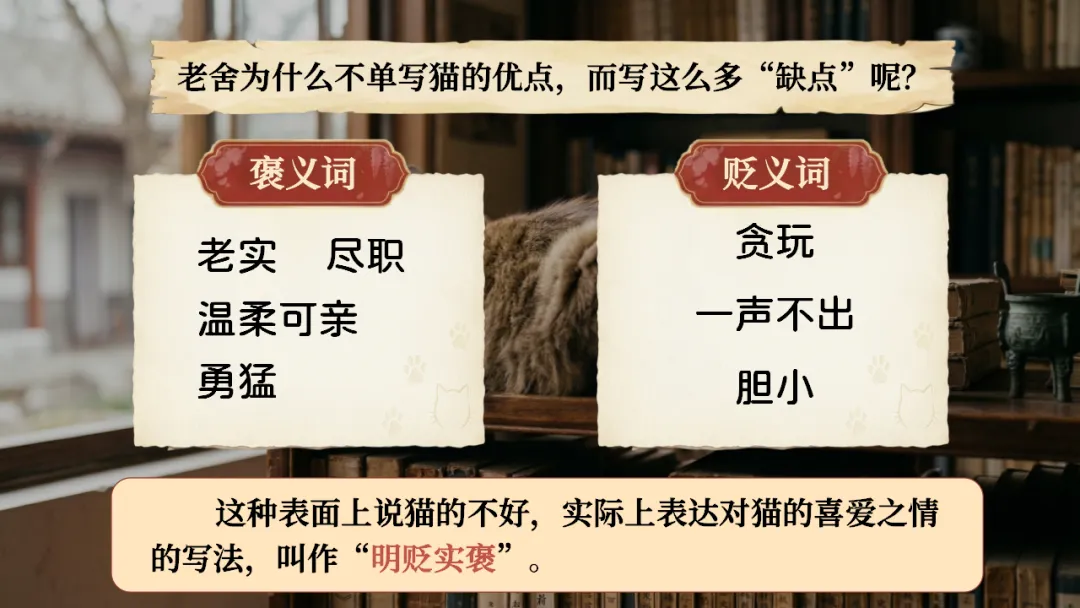 >四下《猫》AI赋能课件 | 品猫性古怪淘气,悟老舍笔墨温情(课件+AI视频+教案)