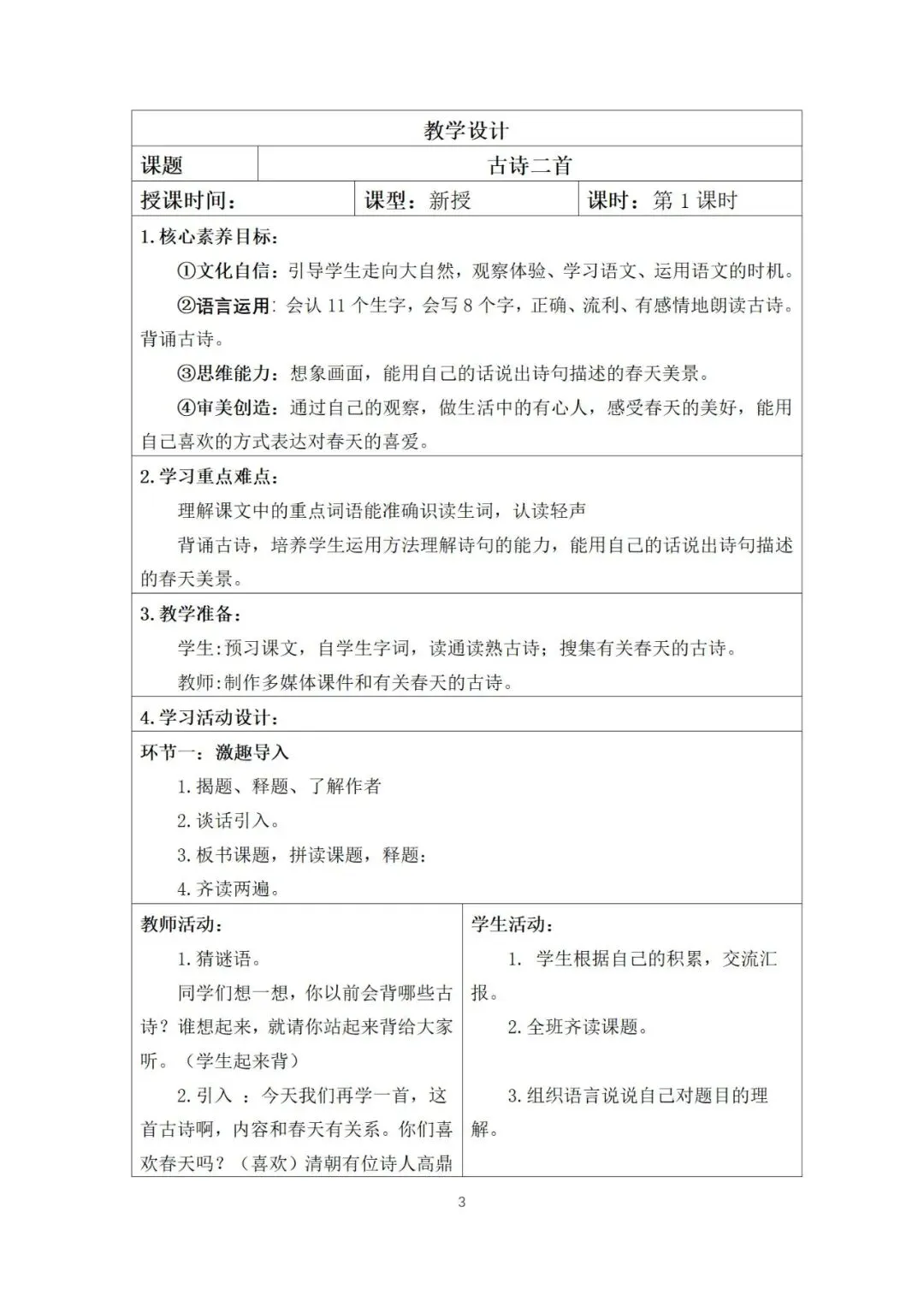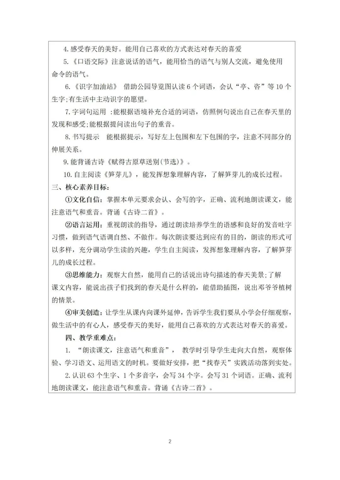 二年级下册核心素养教案(全册)