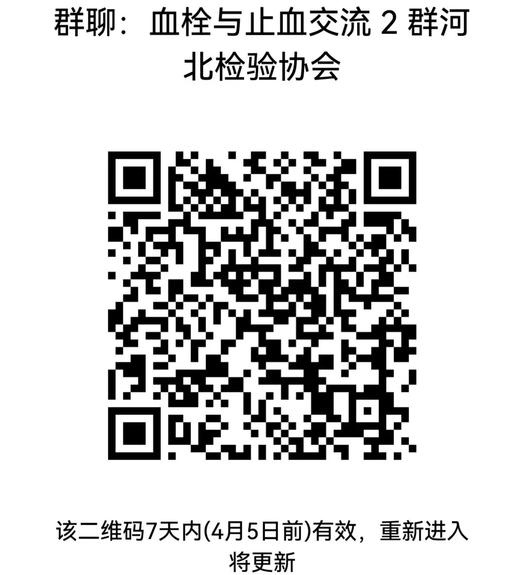 为满足大家需要,方便交流,河北省检验医学管理协会成立血栓与止血交流2群,内容和 1 群一致。 已参加3月28日血栓与止血项目规范化检测与临床应用培训人员,需要电子培训证书和部分教授课件的,扫描下方二维码,进入血栓与止血交流2群,入群后扫描接龙二维码,逐项填写。通过邮箱发证书和课件,必须正确填写邮箱。其他专家课件,陆续在燕赵检验医学公众号发布,关注公众号后才可以下载。已经加入在1 群并接龙者不需要进入2群。