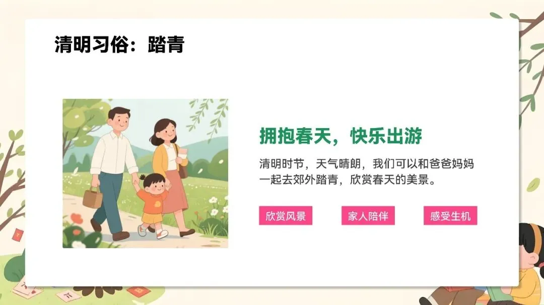 你的家乡在清明节有什么特别的习俗?(是吃鸡蛋、吃青团,还是去踏青?)欢迎在评论区留言分享~如果你也觉得这份课件很不错,欢迎在文末为我们点个“赞”和“在看”,推荐哦