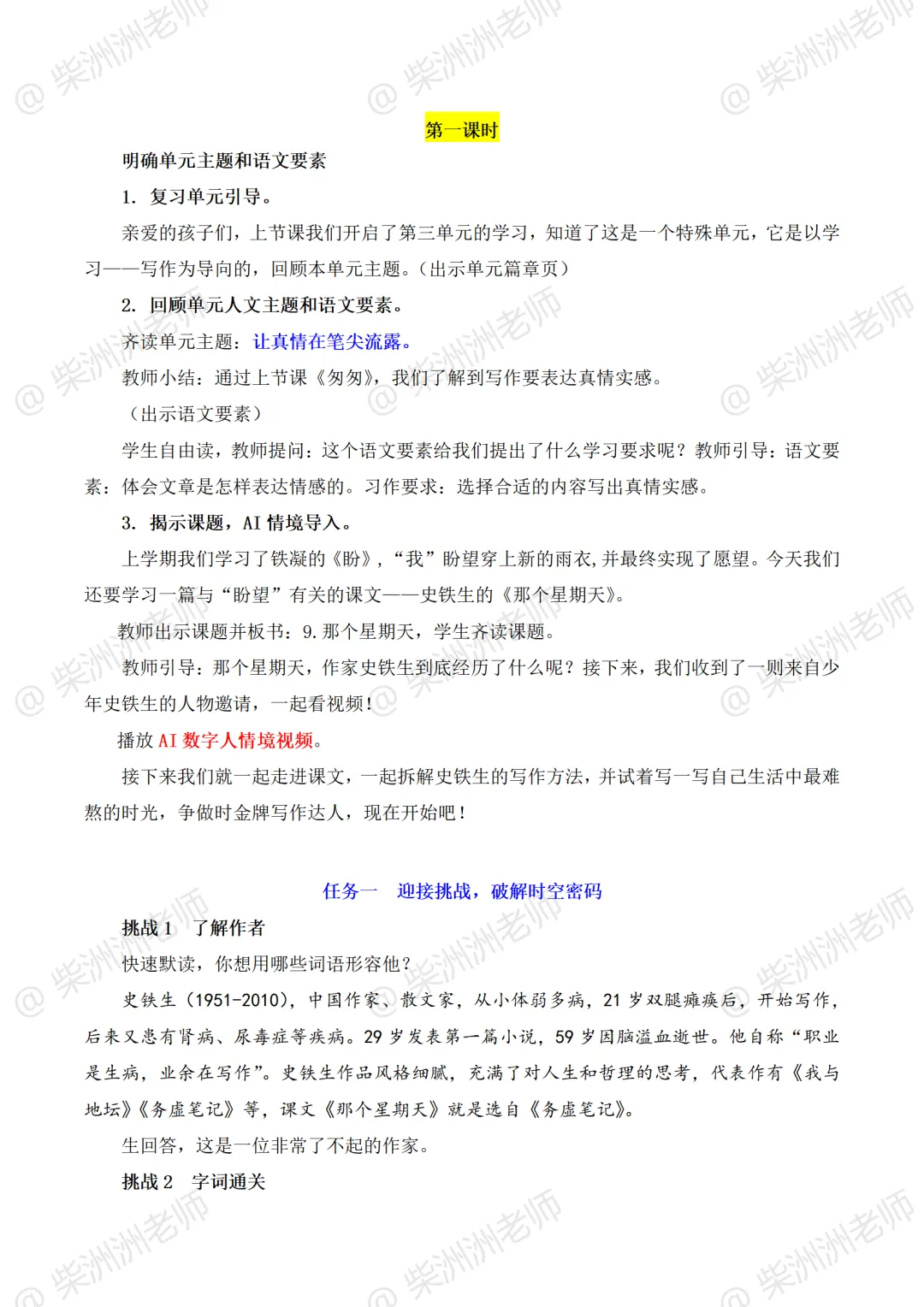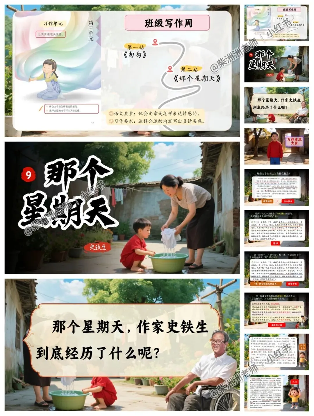 AI赋能!六下《那个星期天》公开课课件+教案!写作交流大会