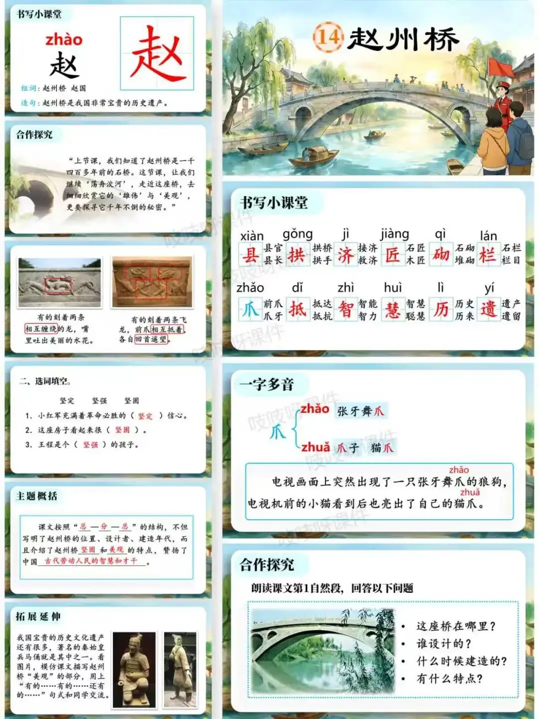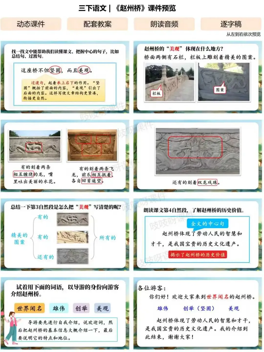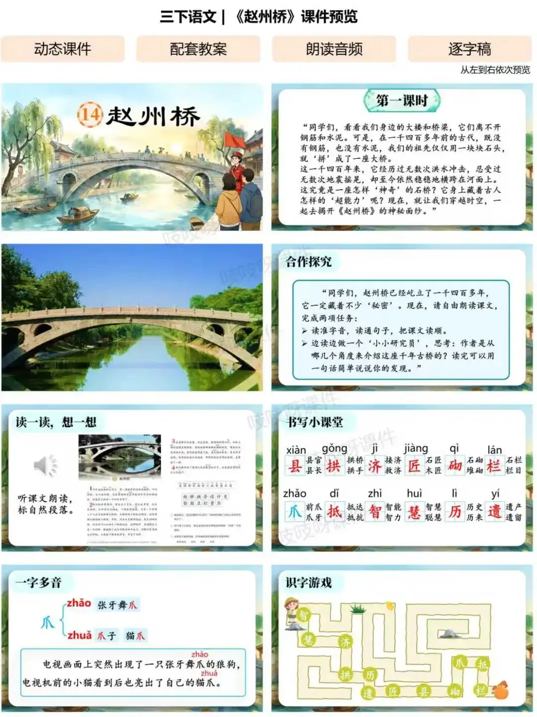 今天给大家分享的是三年级下册语文《赵州桥》动态课件。