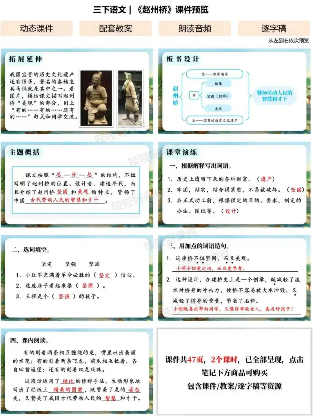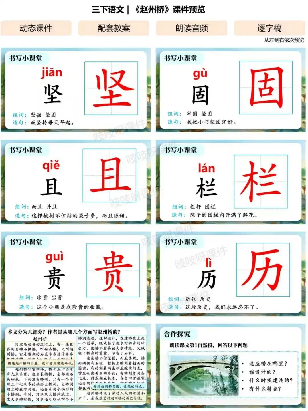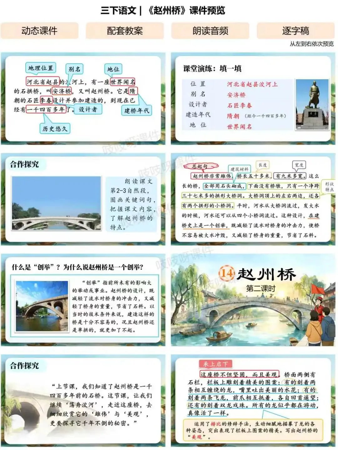 今天给大家分享的是三年级下册语文《赵州桥》动态课件。