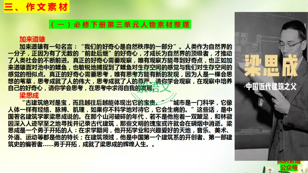 (一)必修下册第三单元人物素材整理