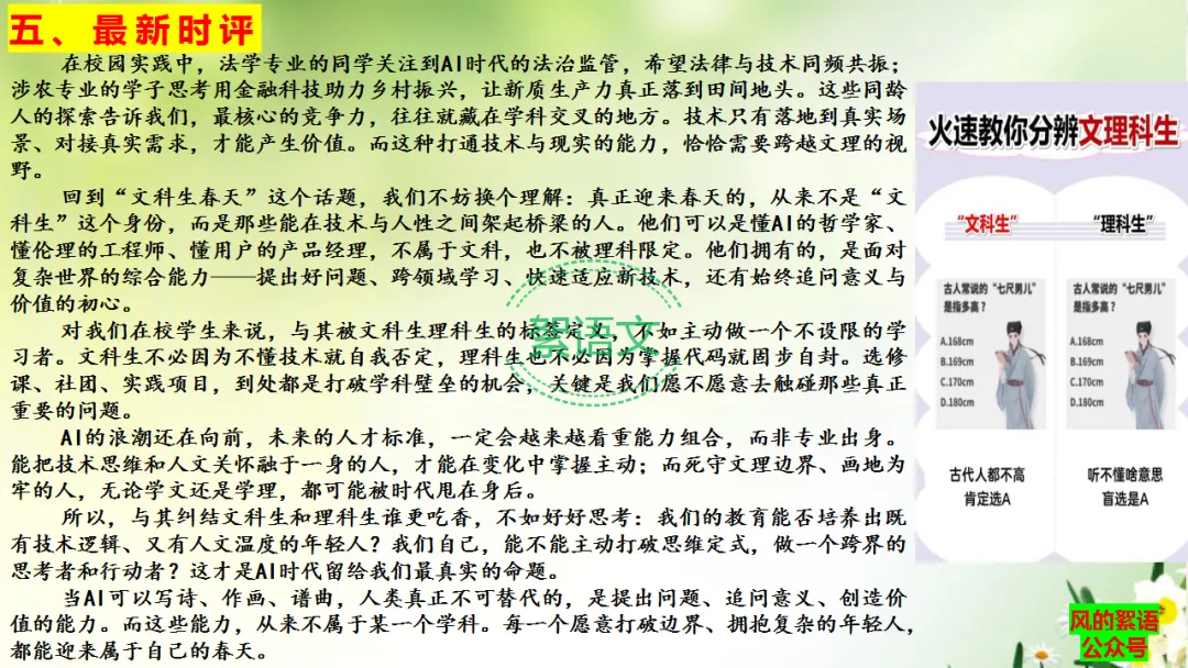回到“文科生春天”这个话题,我们不妨换个理解:真正迎来春天的,从来不是“文科生”这个身份,而是那些能在技术与人性之间架起桥梁的人。他们可以是懂AI的哲学家、懂伦理的工程师、懂用户的产品经理,不属于文科,也不被理科限定。他们拥有的,是面对复杂世界的综合能力——提出好问题、跨领域学习、快速适应新技术,还有始终追问意义与价值的初心。