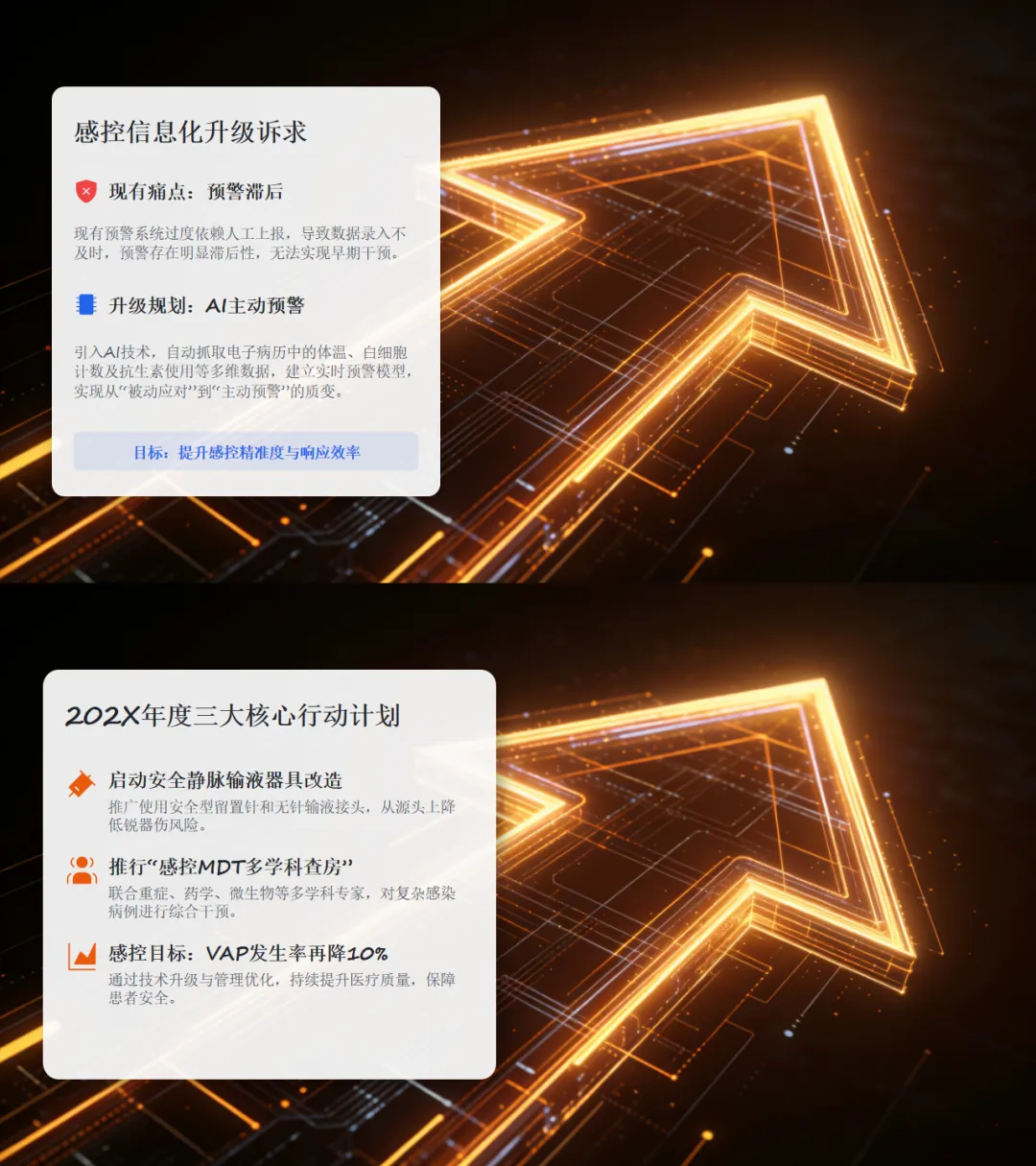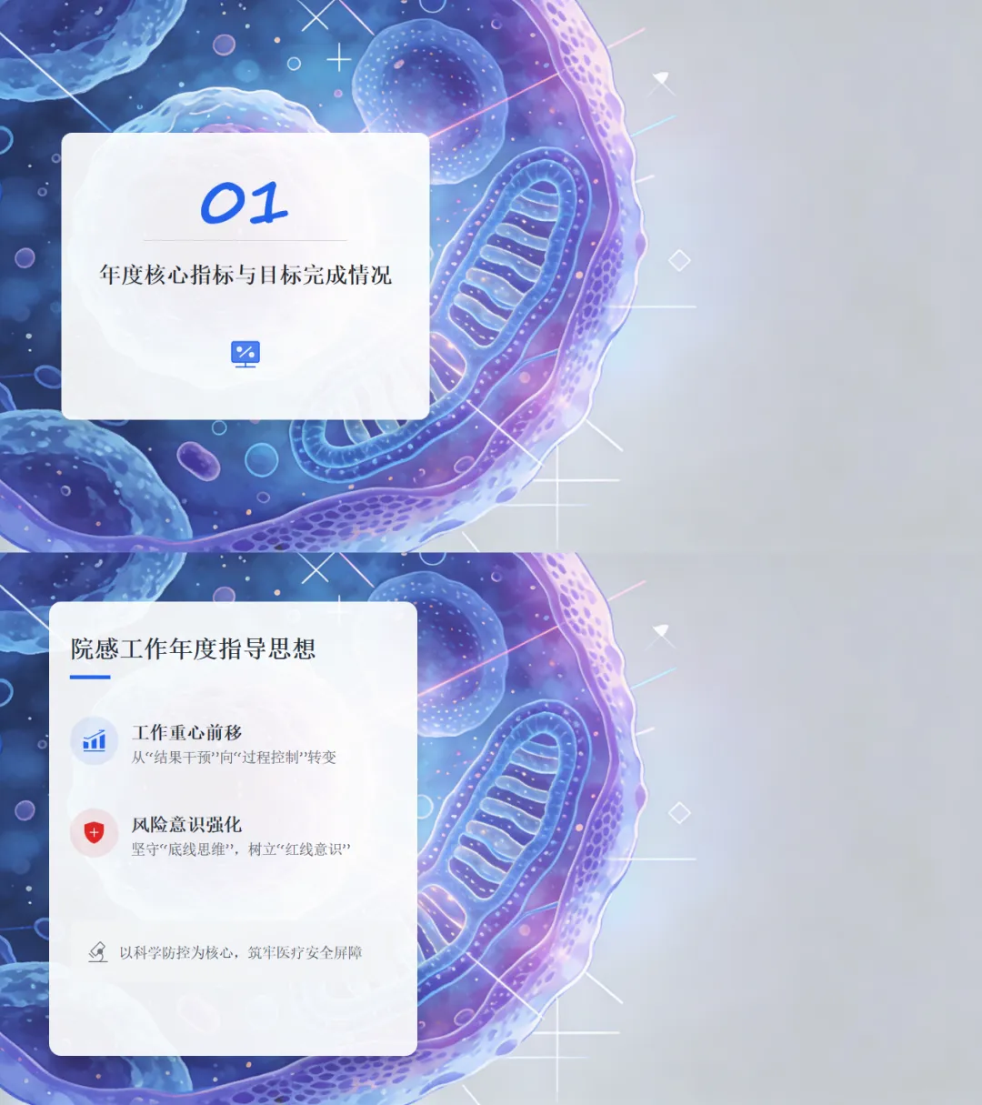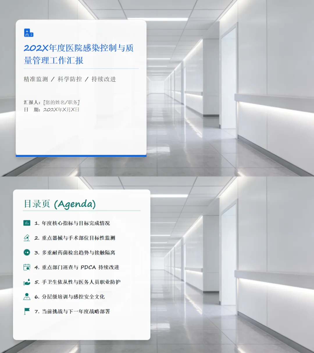 1. 内容: 【PPT课件】医院感染控制与质量管理年度工作汇报PPT+宣讲稿