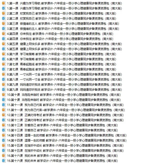 >南大版《心理健康》六年级全一册教案+ppt课件,可下载!
