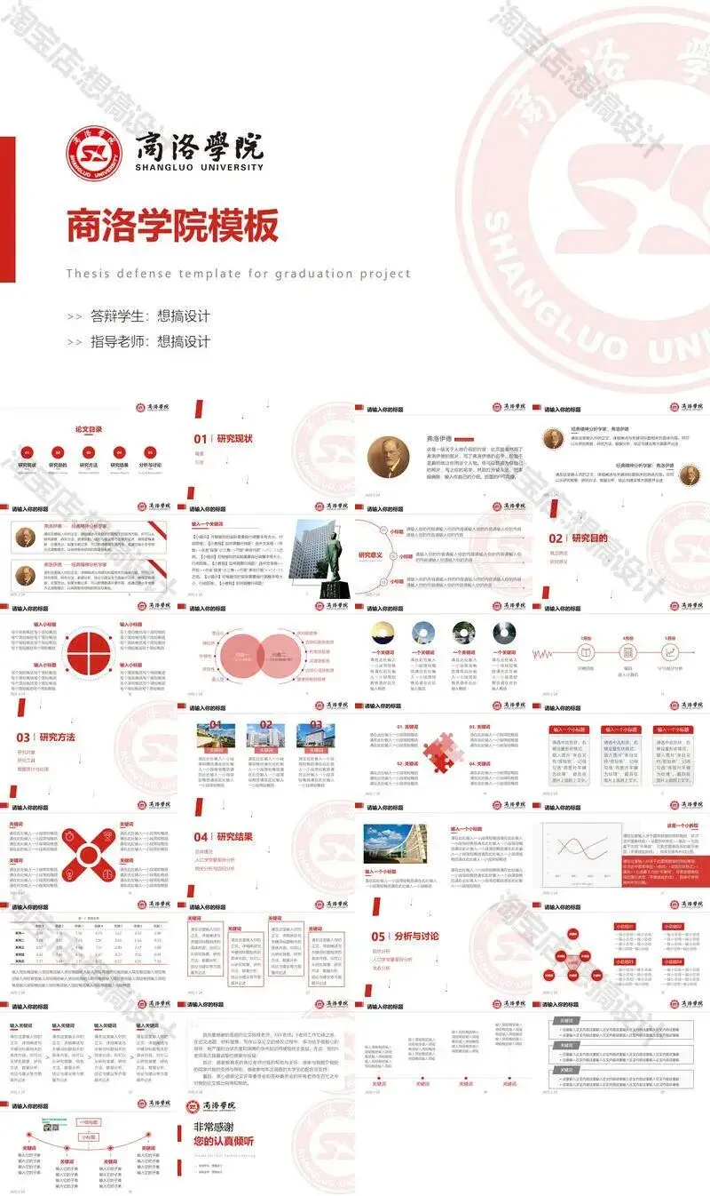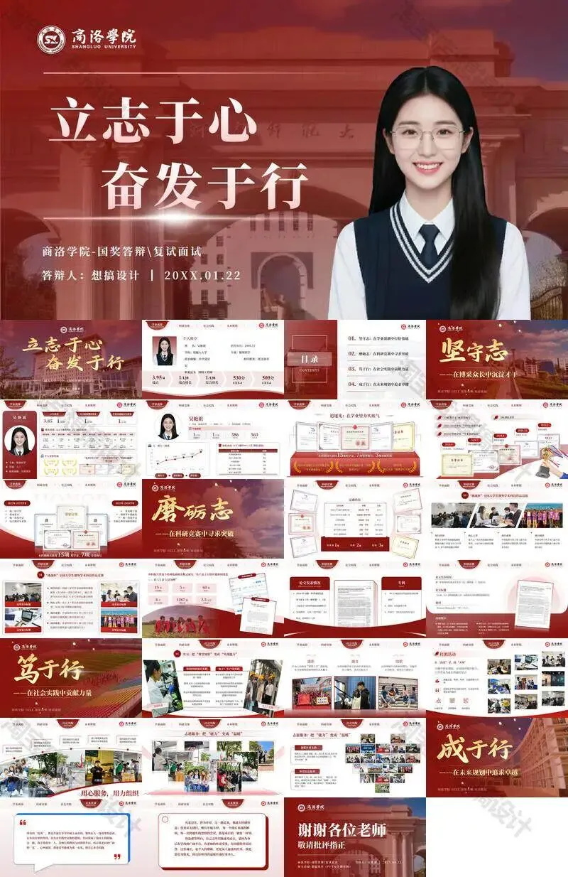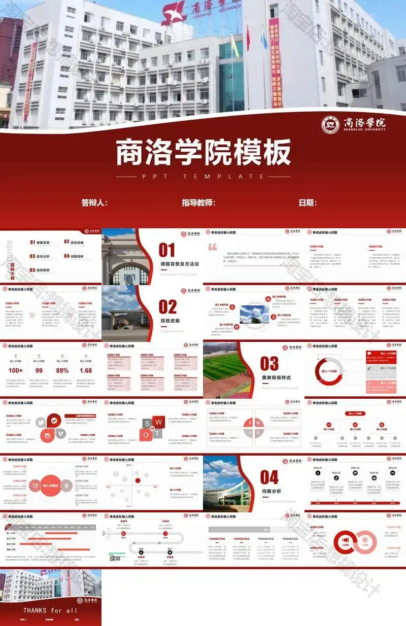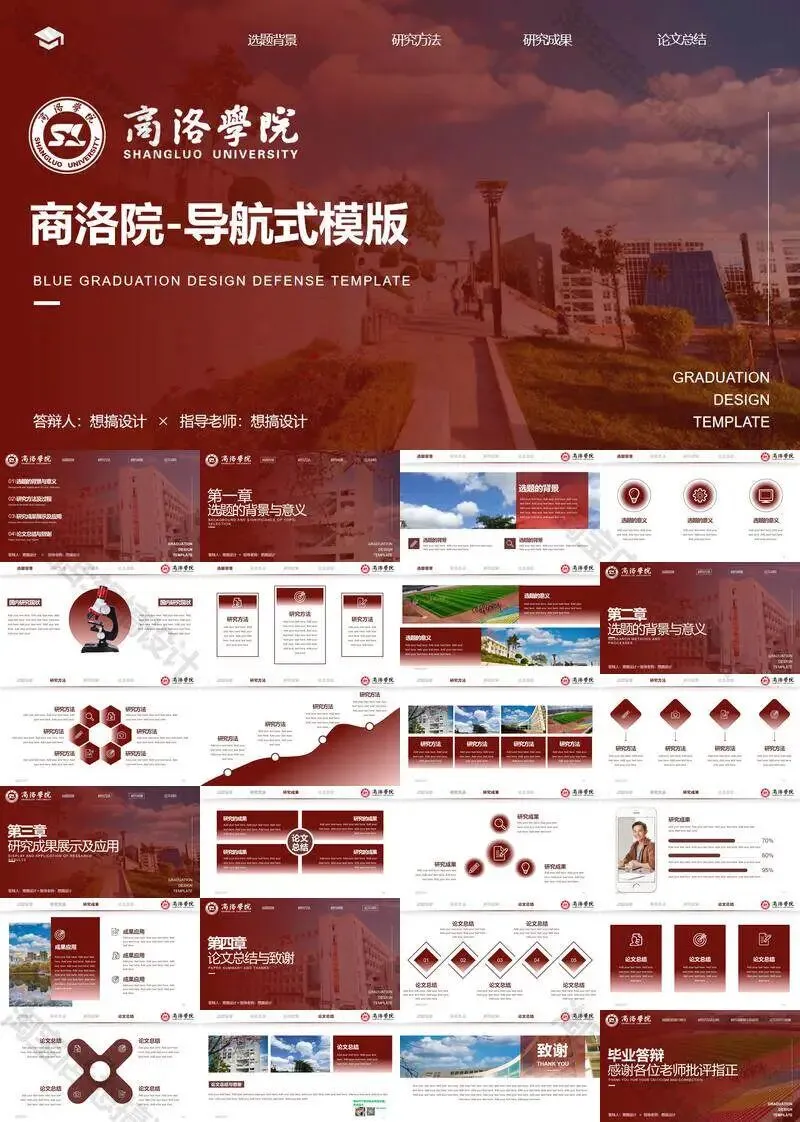 >商洛学院毕业答辩PPT模板汇报幻灯片课件总结大学生作品集