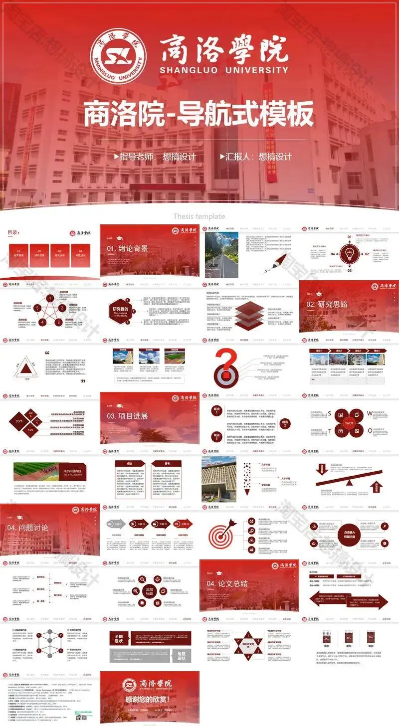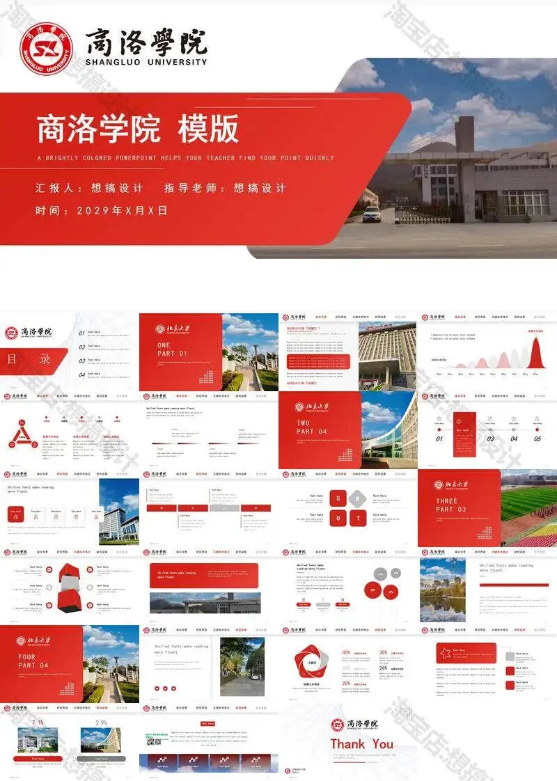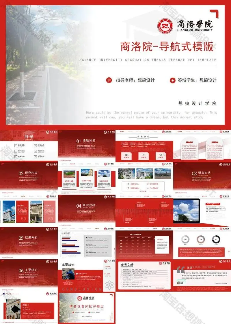 >商洛学院毕业答辩PPT模板汇报幻灯片课件总结大学生作品集