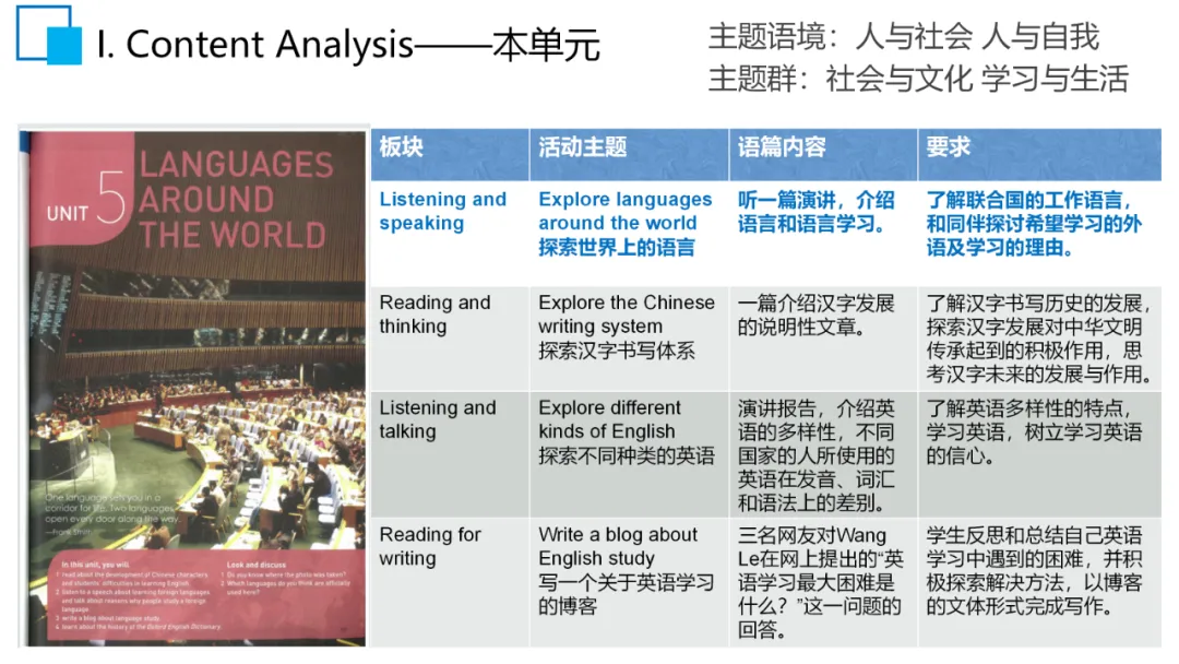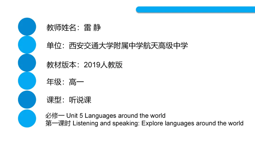 说课课件:人教版必修第一册 Unit 5 Listening and speaking 说课 (陕西 雷静)