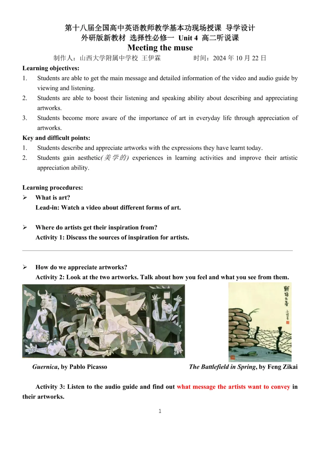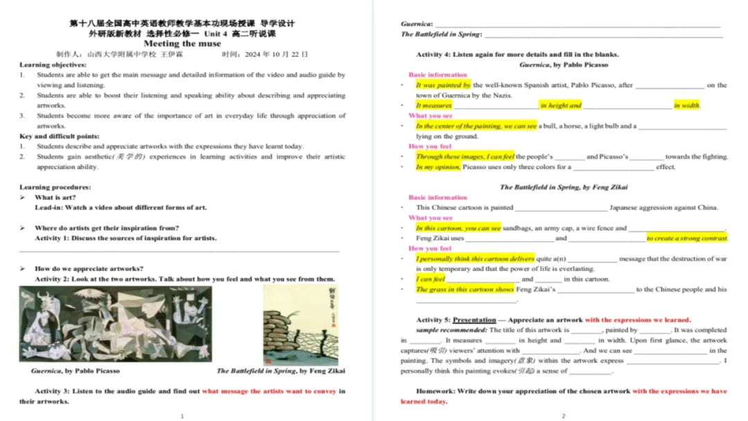 说课课件:人教版必修第一册 Unit 5 Listening and speaking 说课 (陕西 雷静)