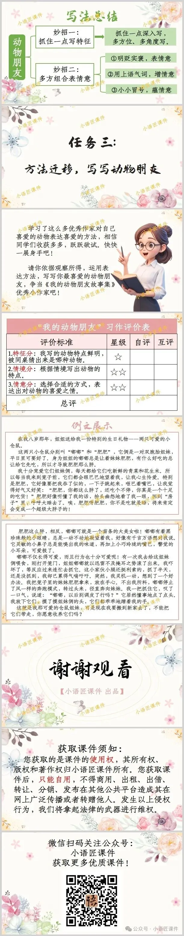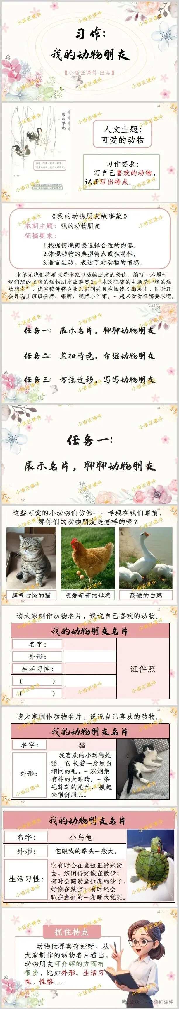 大家好,我是小语匠课件!今天给大家分享部编人教版四年级下册《习作:我的动物朋友》的独家课件。